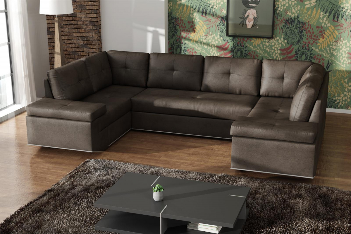 Sedací souprava Zoja, je velice oblíbeným modelem a uspokojí i ty nejnáročnější zákazníky. Spojuje 2 důležité prvky, které nesmí chybět žádné sedací soupravě. Jsou to pohodlí a praktičnost. Praktickou stránkou této sedací soupravy je možnost rozložení pro příležitostné přespání návštěvy a nepostradatelný úložný prostor. Úložné prostorya jsou v sedací soupravě dva a můžete je využít např.na lůžkoviny. Na výplň sedáku je použitá nejkvalitnější sendvičová výplň a opěrky zad mají luxusní silikonovou výplň. Tato kombinace zajišťuje komfort a pohodlí při sezení. Sedací souprava je potažena látkou nové generace Amarilo, vyráběnou v Belgii. Je celočalouněná, takže je vhodná i k umístění do prostoru. Látka Amarilo vzhledem připomíná kůži a má vynikající vlastnosti jako jsou např. vysoká otěruvzdornost, odolnost proti zašpinění, výborně se čistí a udržuje což jistě ocení hlavně v rodinách s malými dětmi, je příjemná na dotek a v neposlední řadě má krásný vzhled. Sedací soupravu nabízíme také v provední do U a v několika trendy barvách. Vyobrazené doplňky a dekorace nejsou v ceně. Sedací souprava bude dodána v potahové látce, která je vyobrazena na úvodní fotografii. V doplňkových fotografiích jsou vyobrazeny další možné varianty.