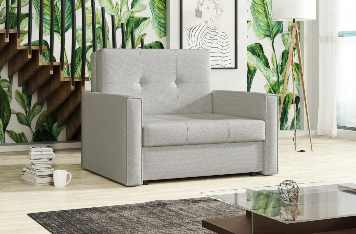 Rozkládací křeslo Vivian je vyrobeno v jednoduchém a zároveň elegatním designu, který se hodí do všech Interiérů. Výborně se hodí do dětského, studentského, nebo hostinského pokoje. Jednoduchým rozložením pomocí automatu, získáte lůžko k příležitostnému přespání Vaší návštěvy, nebo kamaráda dětí. Výplň sedáku tvoří vlnité pružiny v kombinaci s PUR pěnou. Křeslo je potaženo látkou a nabízíme ho v několika trendy odstínech. Křeslo disponuje i nepostradatelným úložným prostorem, který využijete např. na deku a polštář. V ceně křesla je 1 dekorační polštář. Ostatní vyobrazené dekorace nejsou v ceně. Úvodní fotografie je ilustrační. Křeslo bude dodáno v potahové látce, jejíž vzorek je vyobrazen v doplňkových fotografiích.
