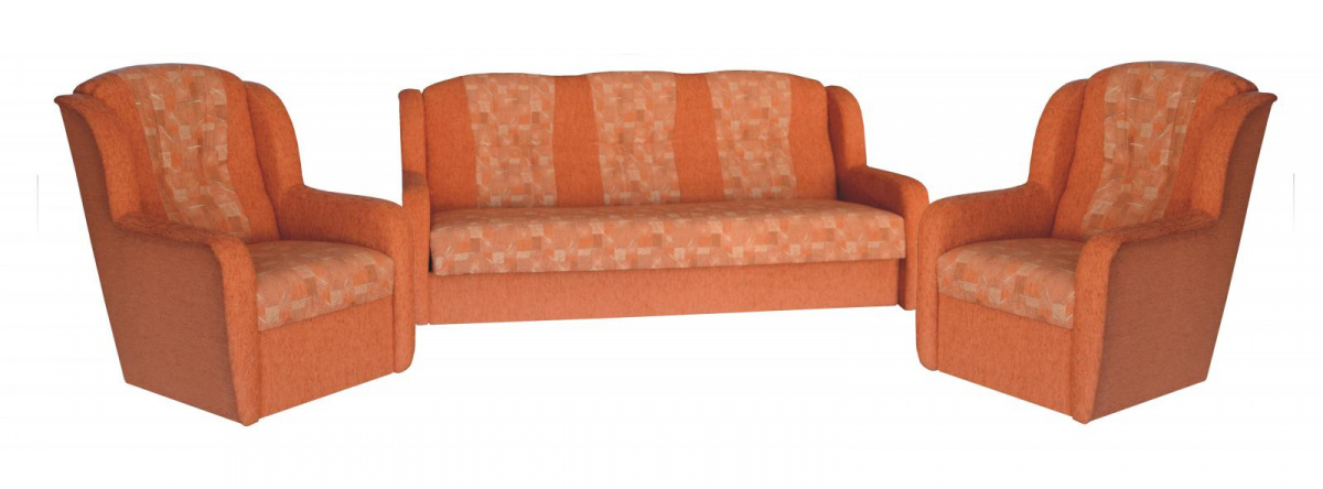 Ušák je stále velmi oblíbeným klasickým modelem sedací soupravy v provedení 3F+1+1. Je velmi pohodlná a zároveň praktická. Sedací souprava je rozkládací a samozřejmostí je i úložný prostor. Jednoduchým rozkladem pomocí systému "klik klak" vznikne lůžko k příležitostnému přespání Vaší návštěvy. Sedací souprava je potažena kvalitní látkou a nabízíme ji v několika barvách, ze kterých si určitě vyberete tu nejvhodnější pro Váš obývací pokoj. Výpň sedáků tvoří pružiny v kombinaci s kvalitní PUR pěnou. Tato kombinace zajistí velmi pohodlné sezení. Cena sedací soupravy je uvedena za rozkládací trojsed a dvě křesla.