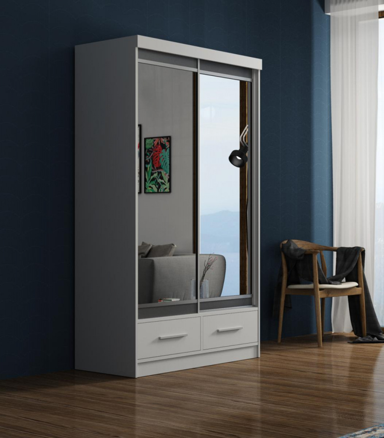 Šatní skříň Margita je vyrobena z lamina. Má posuvné dveře, které šetří prostor a na dveřích skříně jsou zrcadla, které místnost opticky zvětší a prosvětlí. Díky svému vnitřnímu uspořádání (vyobrazeno v doplňkových fotografiích) nabízí skříň dostatek úložného prostoru. Skříň je také vybavena zásuvkami, do kterých můžete uložit drobnosti. Skříň Margo najde uplatnění např. v dětském nebo studentském pokoji, v předsíni, v ložnici i v obývacím pokoji. Nabízíme ji v rozměrech 120 cm, 150 cm, 200 cm a 250 cm. Všechny nabízené rozměry jsou dostupné v černé a bílé barvě a dále také v dekoru sonoma. Skříň je dodávána v demontu a součástí je montážní plánek včetně všech potřebných spojovacích prvků. Vyobrazené doplňky a dekorace nejsou v ceně. ÚVODNÍ FOTOGRAFIE JE ILUSTRAČNÍ. SKŘÍŇ BUDE DODÁNA V DEKORU SONOMA