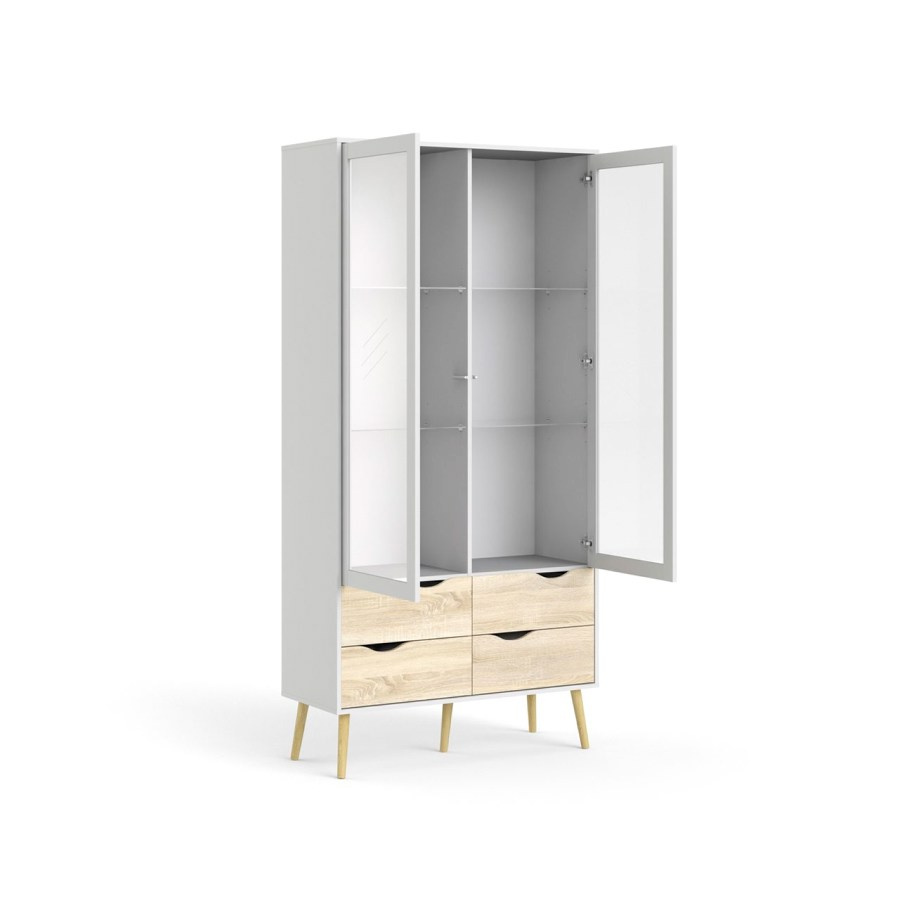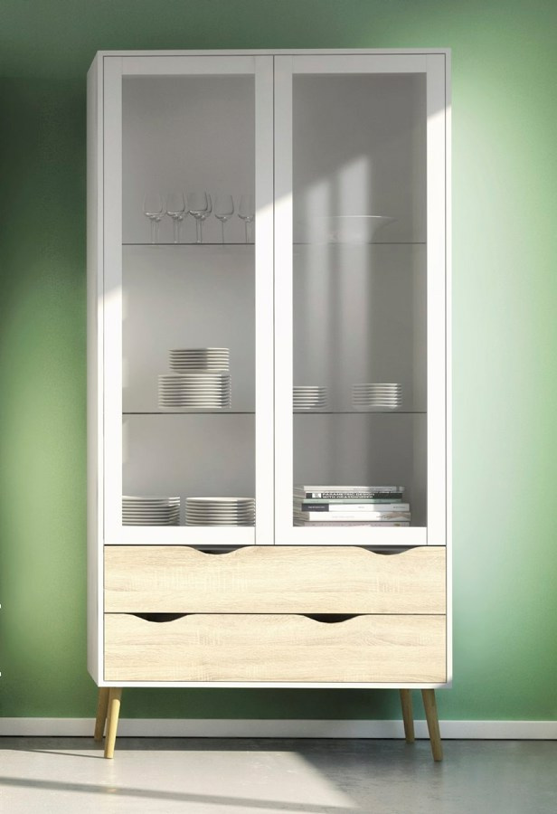 Pokud máte rádi Retro styl, pak je tato kolekce nábytku stvořena pro Vás. Nábytek je zhotoven z lamina o tl. 18 mm, které je odolné a snadné na údržbu. Díky rozmanitosti nabízených prvků, které kolekce Retro nabízí, si můžete sestavit obývací pokoj, jídelnu, ložnici, kancelář, nebo předsíň. Vitína nabízí dostatek úložného prostoru a je vybavena praktickými zásuvkami na drobnosti. Retro vzhled zdůrazňují vysoké šikmé nožky a obloukové výřezy místo úchytek. Vitrínu nabízíme ve dvou barevných provedeních. Je dodávaná v demontu a součástí je montážní plánek včetně všech potřebných spojovacích materiálů. Vyobrazené dekorace nejsou v ceně. Nábytek je dodáván z Dánska, proto doporučujeme ověřit dostupnost zboží.