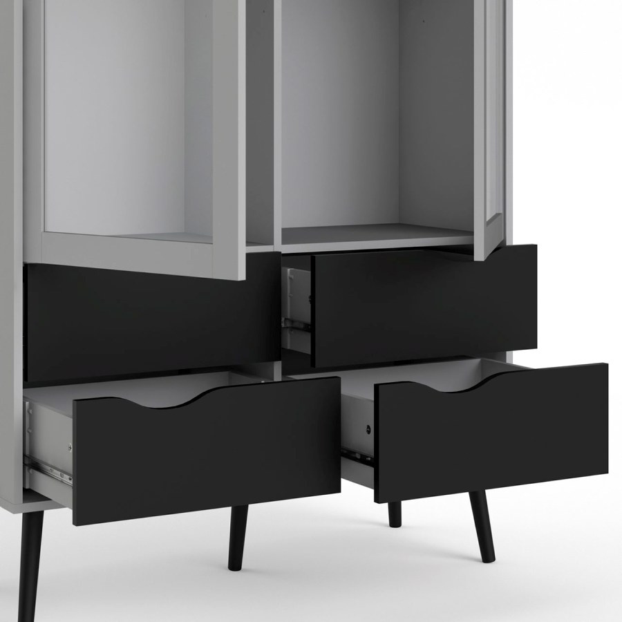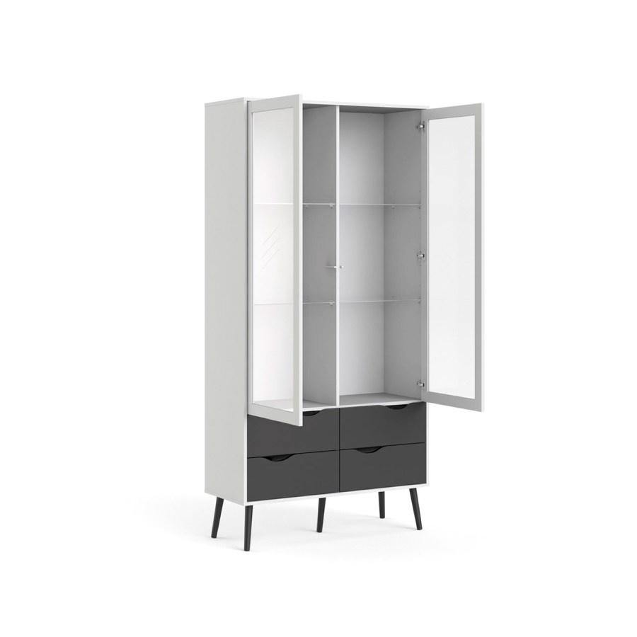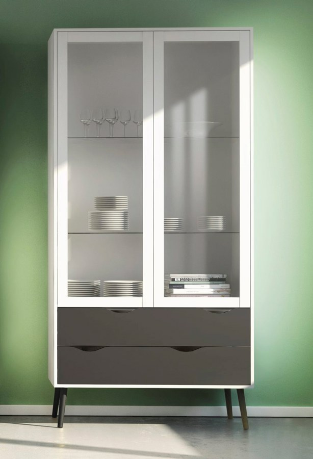 Pokud máte rádi Retro styl, pak je tato kolekce nábytku stvořena pro Vás. Nábytek je zhotoven z lamina o tl. 18 mm, které je odolné a snadné na údržbu. Díky rozmanitosti nabízených prvků, které kolekce Retro nabízí, si můžete sestavit obývací pokoj, jídelnu, ložnici, kancelář, nebo předsíň. Vitína nabízí dostatek úložného prostoru a je vybavena praktickými zásuvkami na drobnosti. Retro vzhled zdůrazňují vysoké šikmé nožky a obloukové výřezy místo úchytek. Vitrínu nabízíme ve dvou barevných provedeních. Je dodávaná v demontu a součástí je montážní plánek včetně všech potřebných spojovacích materiálů. Vyobrazené dekorace nejsou v ceně. Nábytek je dodáván z Dánska, proto doporučujeme ověřit dostupnost zboží.