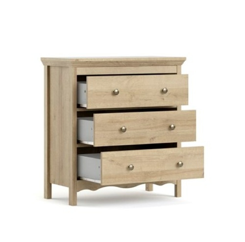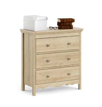 Komoda Borgias se třemi zásuvkami, kterou Vám nabízíme, je vyrobená v jednoduchém a nadčasovém skandinávském stylu. Má rovné a čisté linie, které vytvoří útulný, pohodový a příjemný interiér. Komoda díky svému provední nabízí univerzální použití, dostatek úložného prostoru a najde uplatnění v kterékoliv místnosti Vašeho bytu. Výborně se hodí např. do ložnice, do dětského i studentského pokoje, ale i do pracovny či předsíně. Komoda je dodávaná v demontu. Součástí je montážní návod včetně všech spojovacích prvků. Vyobrazené dekorace nejsou v ceně.