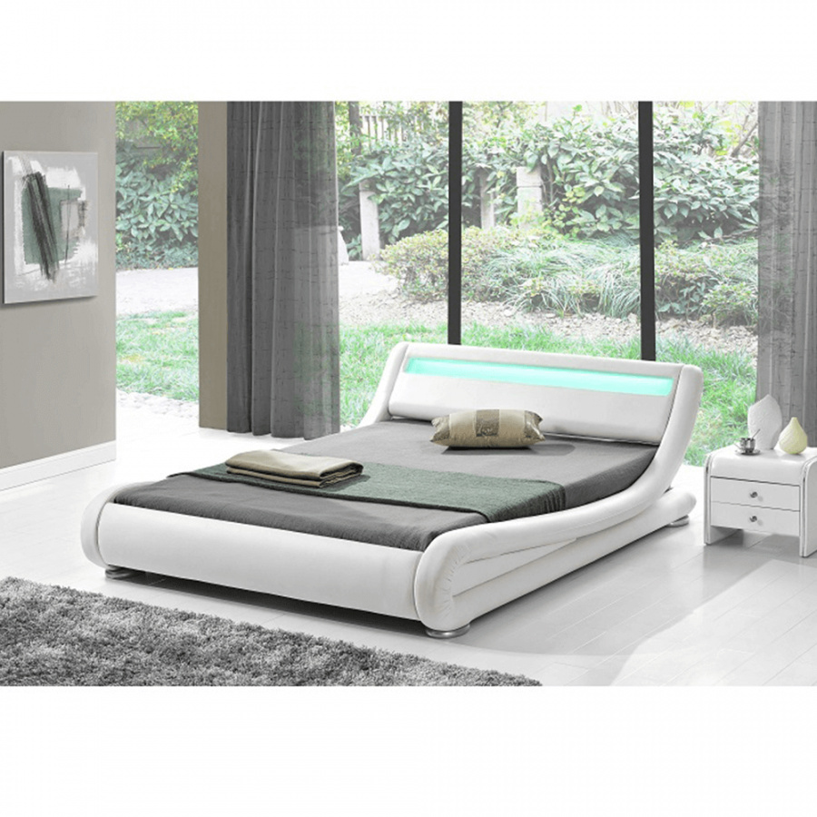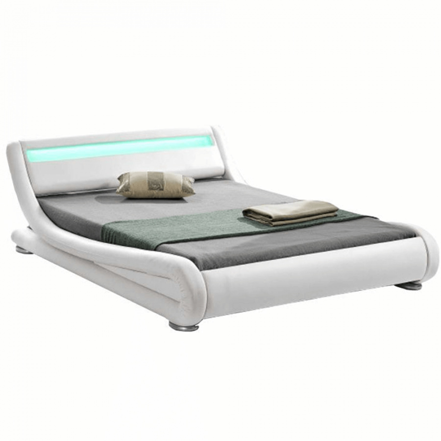 Moderní postel s RGB LED osvětlením, bílá, 160x200, FILIDA