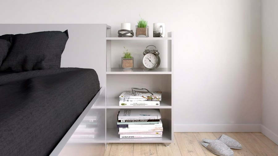 Čelo postele s posuvnými regály síře 140 cm, je skvělým doplňkem k posteli Simplicity 140x200 cm. Se svým skrytým úložným prostorem na knihy, časopisy a všechny další věci, které byste rádi měli po ruce, se stane velmi praktickým a využívaným kusem nábytku. Když jsou regály vysunuté a nahradí Vám noční stolek. Jakmile je zasunete, bude Vaše ložnice stále působit uspořádaně. Pro snadné posunování jsou regály vybaveny kolečky. Čelo je dodáváno v demontu a součástí balení je montážní plánek včetně všech potřebných spojovacích prvků. Vyobrazené dekorace nejsou v ceně.