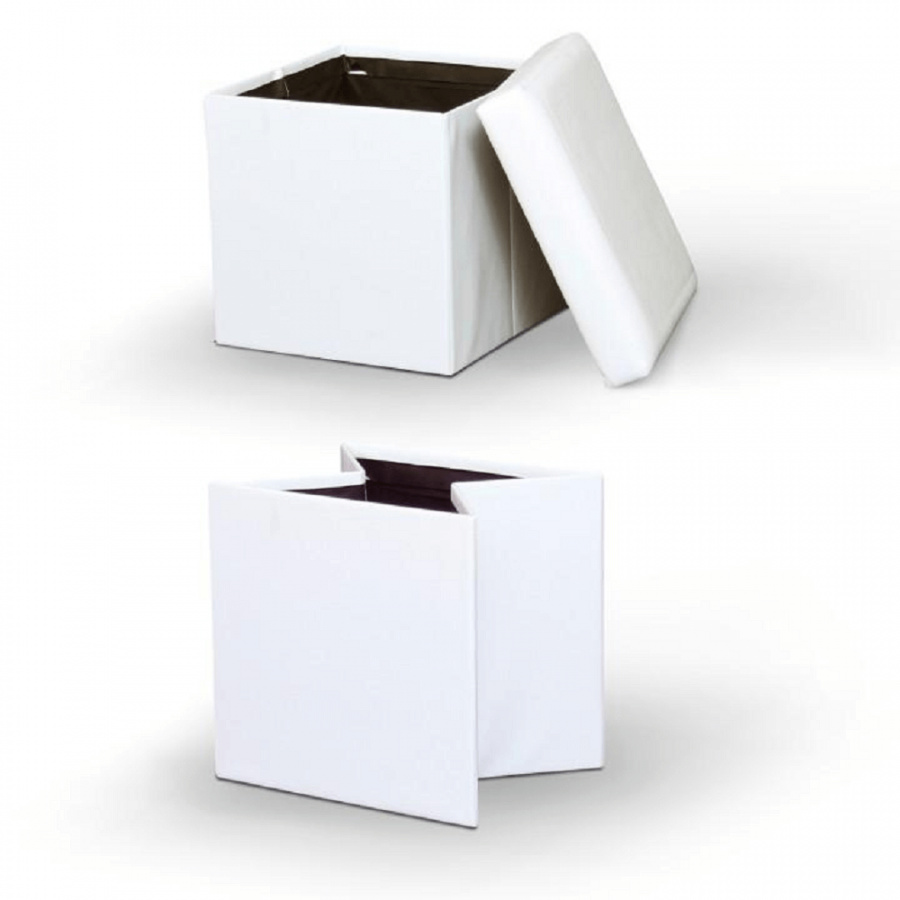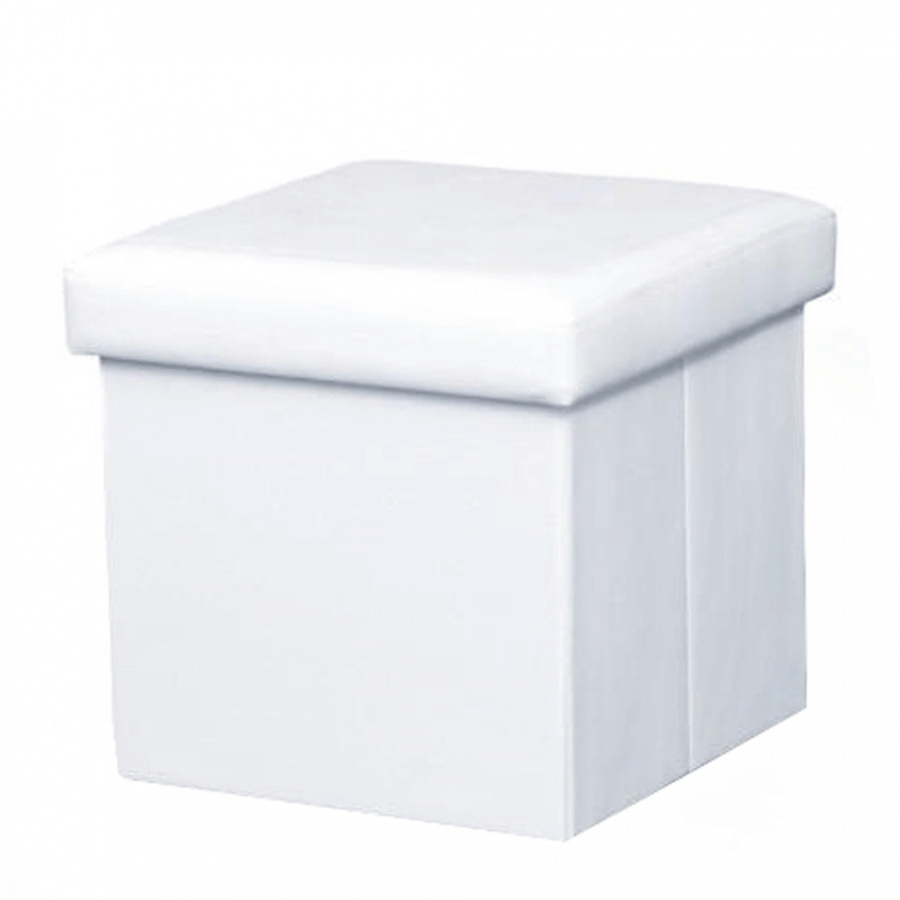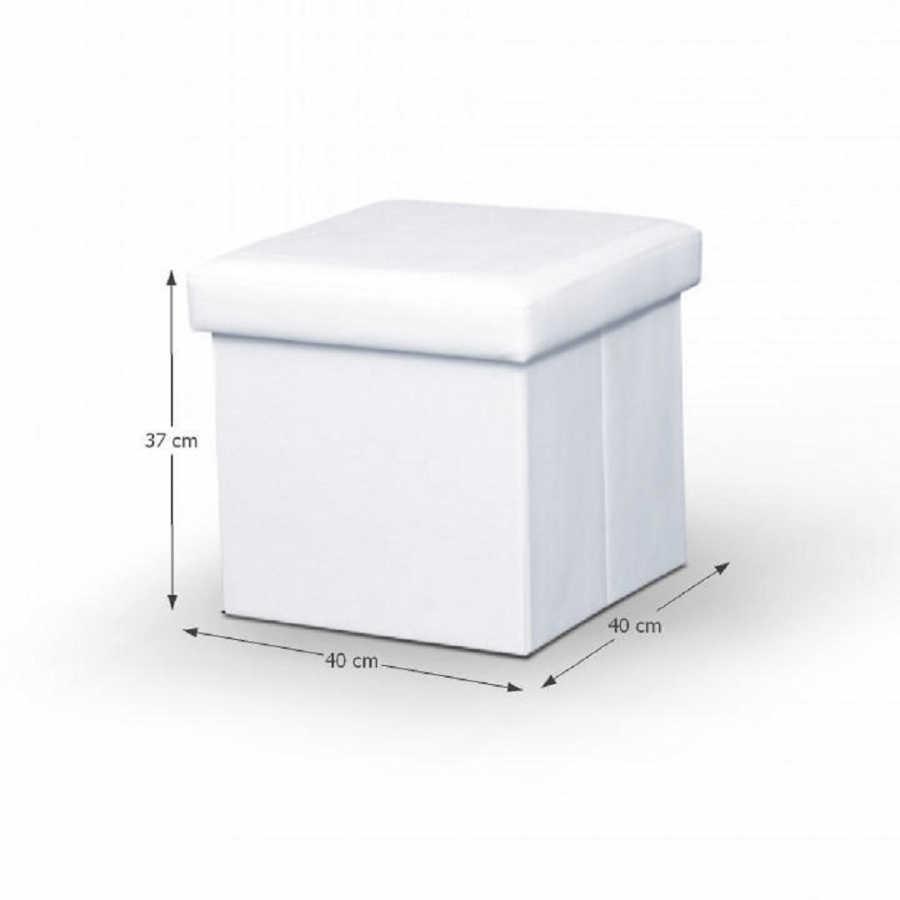Skládací taburet s úložným prostorem TELA NEW, Materiál: ekokůže, Barevné provedení: bílá, Rozměry (ŠxHxV): 40x40x37 cm.