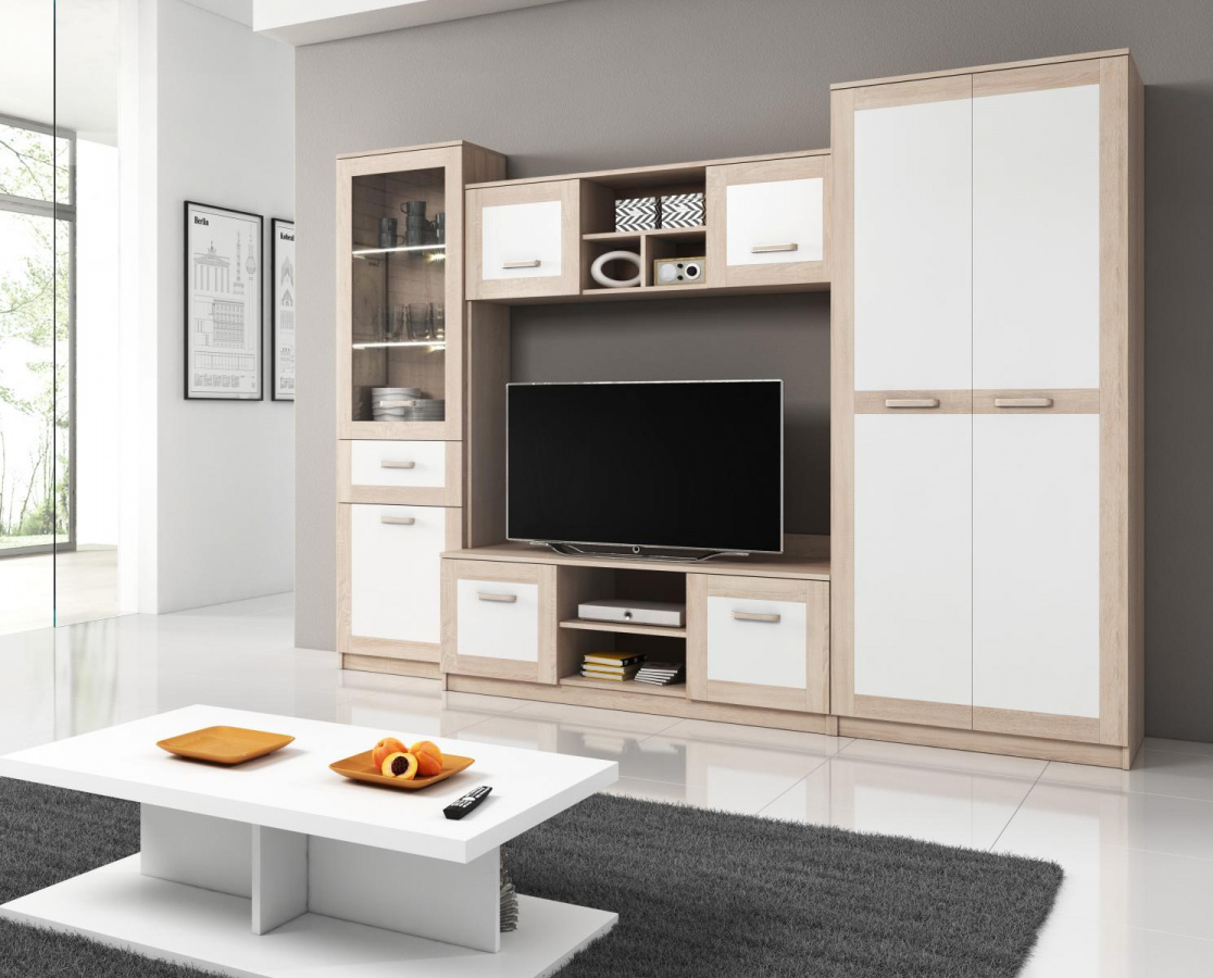 Obývací stěna Audrey patří mezi oblíbenou klasiku. Nabízí dostatek úložného prostoru a je vhodná i do menších pokojů. Stěna je vyrobena z lamina v dekoru dub sonoma v kombinaci s bílou. Ke stěně doporučujeme dokoupit komodu Audrey ve stejném designu. Všechny prvky této sestavy jsou dodávány v demontu. Součástí je montážní plánek včetně všech potřebných spojovacích materiálů. Cena je uvedena za sestavu BEZ komody. Vyobrazené doplňky a dekorace nejsou v ceně.