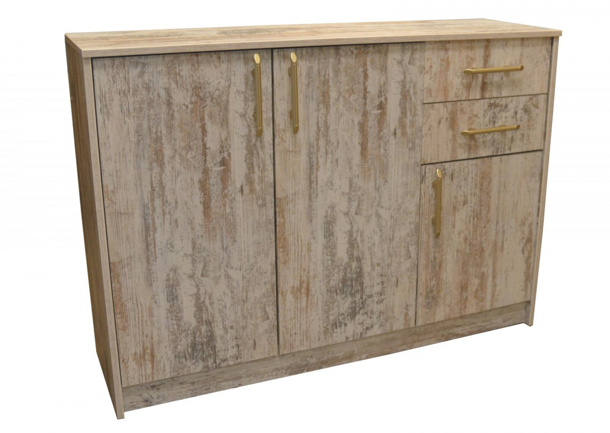 Komoda K1-3D2S má díky svému provedení univerzální požití a nabízí dostatek úložného prostoru. Můžete ji umístit např.do dětského pokoje, ložnice, pracovny, nebo na chodbu. V každé místnosti najde své uplatnění. Komoda je vyrobena z lamina tl.16 mm, které je odolné a snadné na údržbu. Úchytky jsou z tvrzeného plastu. Komoda má dvě zásuvky, jednu menší skříňku a jednu větší skříňku se dvěmi policemi - viz doplňková fotografie. Nabízíme ji v několika dekorech a provedeních. Komoda je dodávaná v demontu, včetně návodu ke složení a potřebných spojovacích prvků.