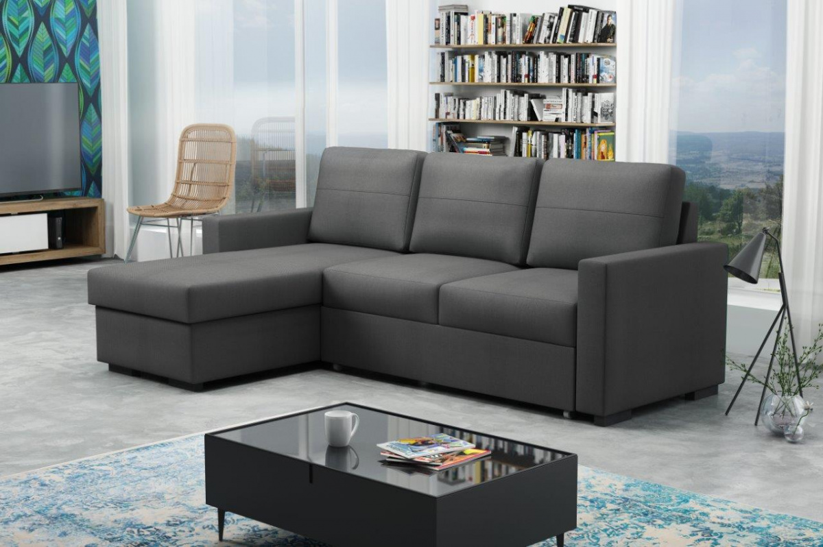 Tomáš je moderní rohová sedací souprava s nadčasovým designem. Její předností je pohodlí, praktičnost a univerzální použití. Můžete si ji podle potřeby sestavit jako levou nebo pravou, což je výhoda při zařizování obývacího pokoje. Nemusíte přemýšlet do jakého rohu postavíte sedací soupravu, jednoduše ji podle potřeby přizpůsobíte. Pohodlí při sezení zajišťuje kombinace pružin faliste s kvalitní PUR pěnou a velké opěrné polštáře, které jsou odnímatelné, takže si je můžete přizpůsobit svým potřebám. Praktickou stránkou sedací soupravy je úložný prostor a možnost rozložení k občasnému přespání Vaší návštěvy. Sedací souprava je potažena látkou jednobarevnou látkou a v nabídce najdete více barevných variant. V ceně sedací soupravy jsou 3 velké opěrné polštáře. Ostatní vyobrazené dekorace nejsou v ceně. Zobrazení barev produktu na fotograii se může nepatrně lišit od skutečnosti.