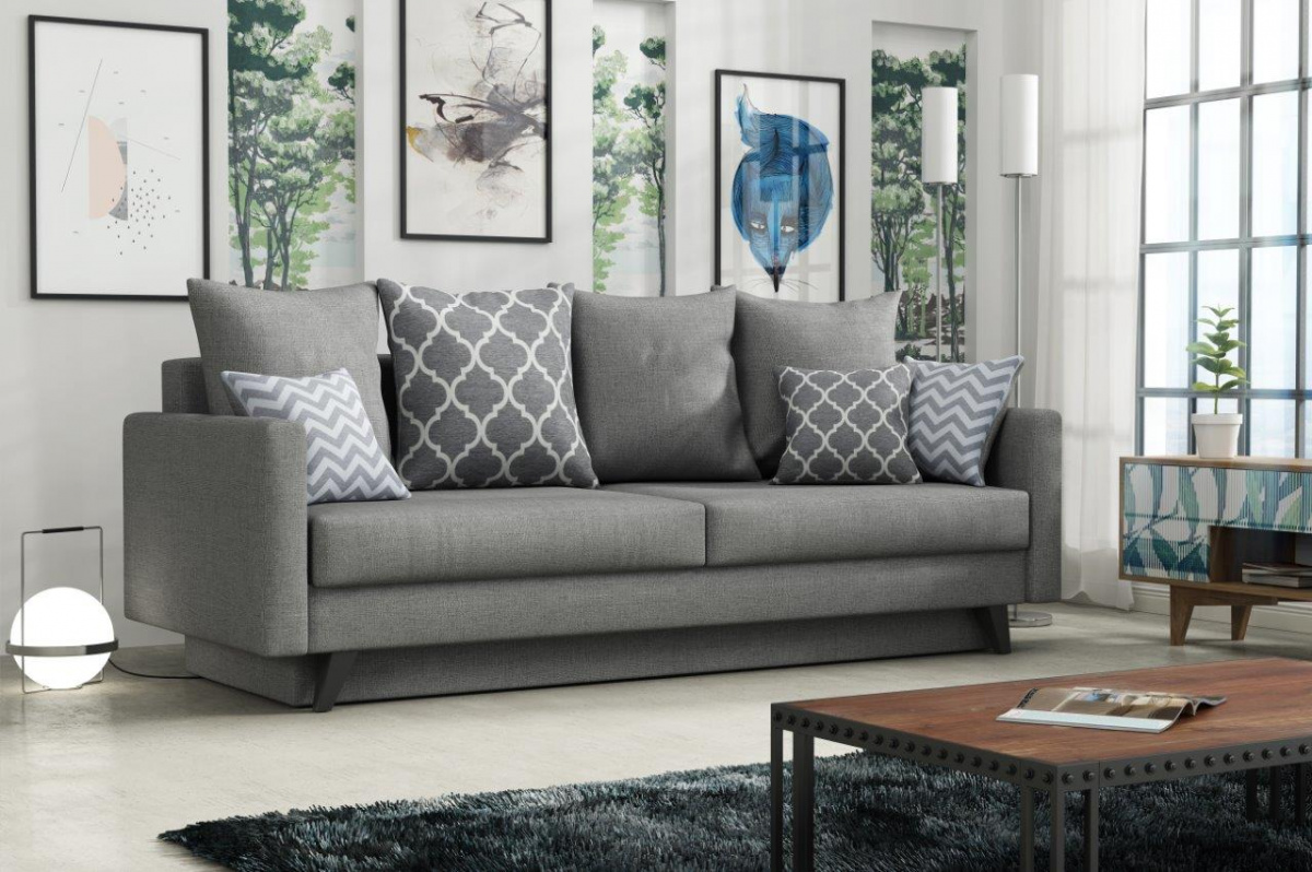Pohovka Odeta je vyrobena v elegantním designu s prvky skandinávského stylu. Její velkou předností je pohodlí a praktičnost. Výplň sedáku tvoří kombinace vlnitých pružin s pružinami bonell a to vše je navíc doplněno kvalitní PUR pěnou. Pohodlí při sezení mj. poskytuje dostatek polštářů, které si můžete přizpůsobit tak, aby se Vám pohodlně sedělo a odpočívalo. Praktickou stánkou pohovky je možnost rozložení. Jednoduchým rozložením pomocí automatu získáte dostatečně velké lůžko pro příležitostné přespání Vaší návštěvy. Pohovka má také nezbytný úložný prostor, který využijete např. na lůžkoviny. Pohovka je celočalouněná, takže ji můžete umístit i do prostoru. Výborně se hodí do obývacího pokoje, do pracovny či pokoje pro hosty. Pohovku nabízíme v několika trendy barvách. V ceně pohovky jsou 4 velké a 3 malé polštáře. Ostatní vyobrazené dopňky a dekorace nejsou v ceně. Zobrazení barev na fotografii se může od skutečnosti lišit.