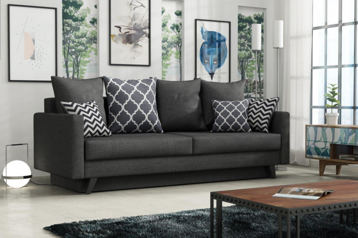 Pohovka Odeta je vyrobena v elegantním designu s prvky skandinávského stylu. Její velkou předností je pohodlí a praktičnost. Výplň sedáku tvoří kombinace vlnitých pružin s pružinami bonell a to vše je navíc doplněno kvalitní PUR pěnou. Pohodlí při sezení mj. poskytuje dostatek polštářů, které si můžete přizpůsobit tak, aby se Vám pohodlně sedělo a odpočívalo. Praktickou stánkou pohovky je možnost rozložení. Jednoduchým rozložením pomocí automatu získáte dostatečně velké lůžko pro příležitostné přespání Vaší návštěvy. Pohovka má také nezbytný úložný prostor, který využijete např. na lůžkoviny. Pohovka je celočalouněná, takže ji můžete umístit i do prostoru. Výborně se hodí do obývacího pokoje, do pracovny či pokoje pro hosty. Pohovku nabízíme v několika trendy barvách. V ceně pohovky jsou 4 velké a 3 malé polštáře. Ostatní vyobrazené dopňky a dekorace nejsou v ceně. Zobrazení barev na fotografii se může od skutečnosti lišit.