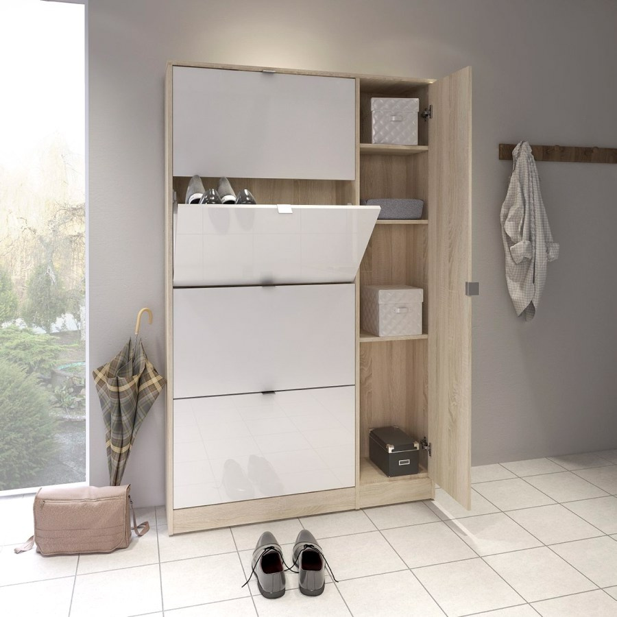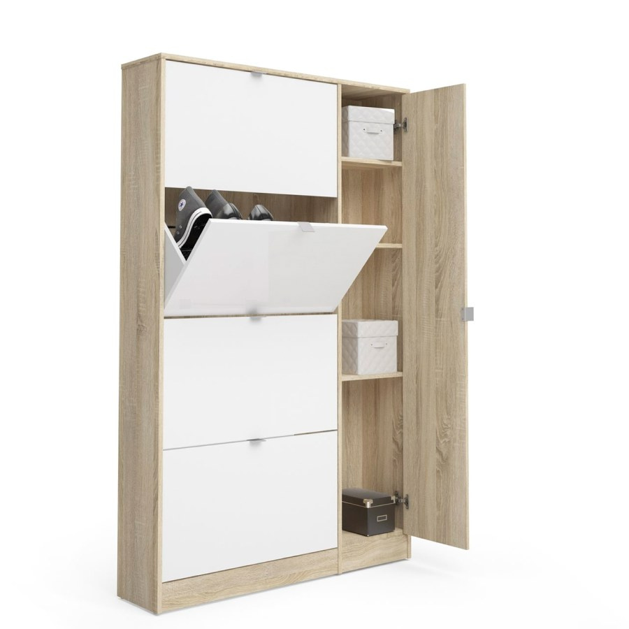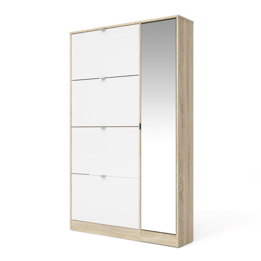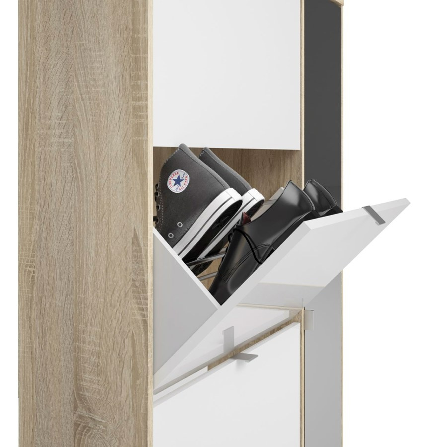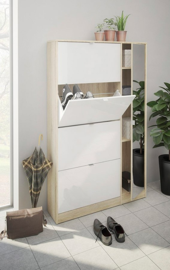 Zachraňte svou předsíň před nepořádkem a pořiďte si tento úžasný botník s výklopnými dvířky a skříňkou se zrcadlem. Díky botníku Flap bude Vaše předsíň stále uklizená a nebudete zakopávat o boty, kterých je v každé domácnosti hromada. Botník Flap má čtyři přihrádky, které poskytnou dostatek prostoru na boty a skříňka poslouží např. k ukládání přípravků na čištění a údržbu bot, nebo k odložení drobných svršků jako jsou čepice, rukavice atd...Botník je vyrobený z lamina, které je odolné a snadné na údržbu. Na dvířkách skříňky je zrcadlo, které je v předsíni nepostradatelné při úpravě zevnějšku před odchodem z domu. Botník je dodávaný v demontu. Součástí balení je montážní návod včetně všech spojovacích prvků. Vyobrazené doplňky a dekorace nejsou v ceně.
