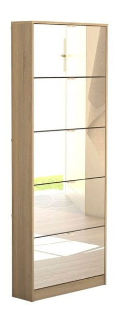 Ať už jste velká rodina, stonožka či jen milovník bot, bude Vaše domácnost potřebovat praktický a prostorný botník, který pojme opravdu velké množství bot. Zachraňte svou předsíň před nepořádkem a pořiďte si tento úžasný botník s výklopnými dvířky se zrcadlem. Díky tomuto botníku bude Vaše předsíň stále uklizená a zakopávání o boty se stane minulostí. Botník Flap má 5 přihrádek, které poskytnou dostatek prostoru na boty. Je vyrobený z lamina, které je odolné a snadné na údržbu. Na dvířkách botníku je zrcadlo, které je v předsíni nepostradatelné při úpravě zevnějšku před odchodem z domu. Botník je dodávaný v demontu a součástí balení je montážní návod včetně všech spojovacích prvků. Vyobrazené doplňky a dekorace nejsou v ceně.