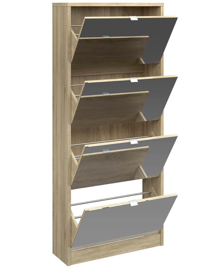 Ať už jste velká rodina, stonožka či jen milovník bot, bude Vaše domácnost potřebovat praktický a prostorný botník, který pojme opravdu velké množství bot. Zachraňte svou předsíň před nepořádkem a pořiďte si tento úžasný botník s výklopnými dvířky se zrcadlem. Díky tomuto botníku bude Vaše předsíň stále uklizená a zakopávání o boty se stane minulostí. Botník Flap má 4 výklopné přihrádky, které poskytnou dostatek prostoru na boty. Je vyrobený z lamina, které je odolné a snadné na údržbu. Na dvířkách botníku je zrcadlo, které je v předsíni nepostradatelné při úpravě zevnějšku před odchodem z domu. Botník je dodávaný v demontu a součástí balení je montážní návod včetně všech spojovacích prvků. Vyobrazené doplňky a dekorace nejsou v ceně.