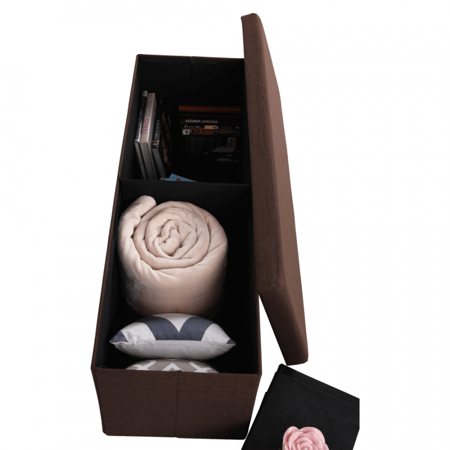 Skládací taburet s úložným prostorem v hnědé barvě.