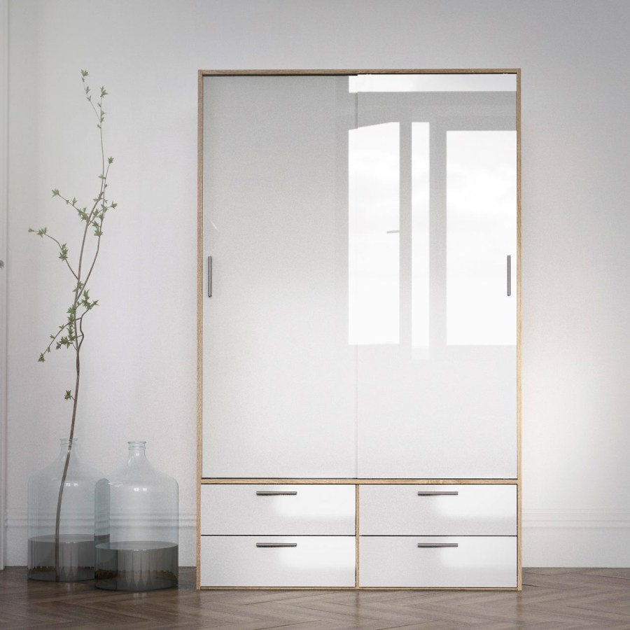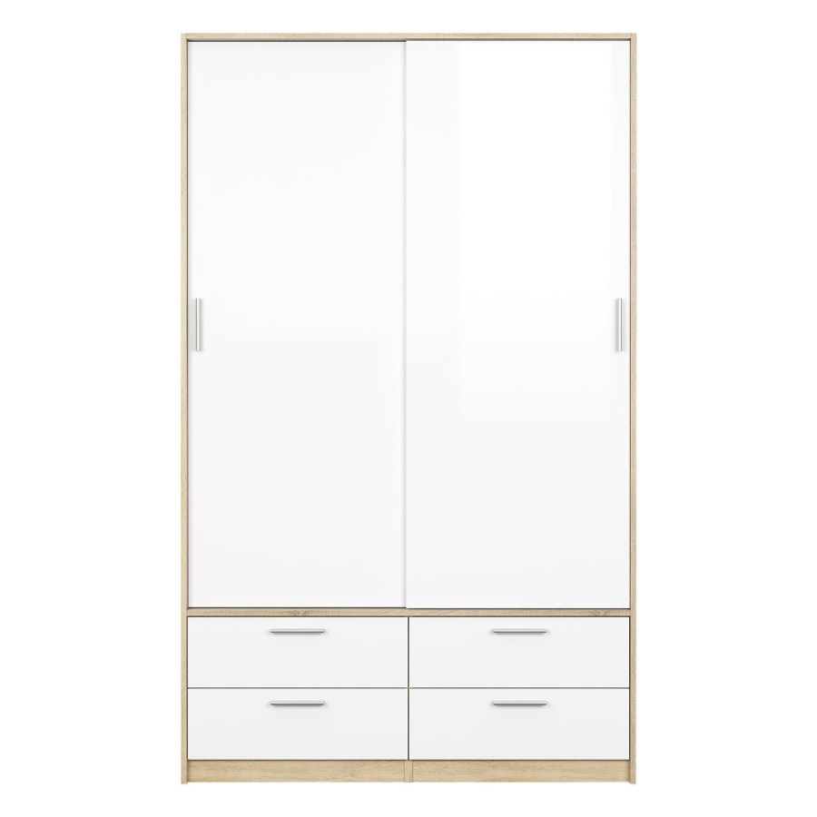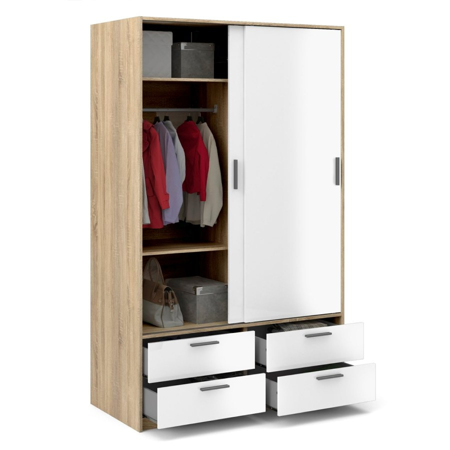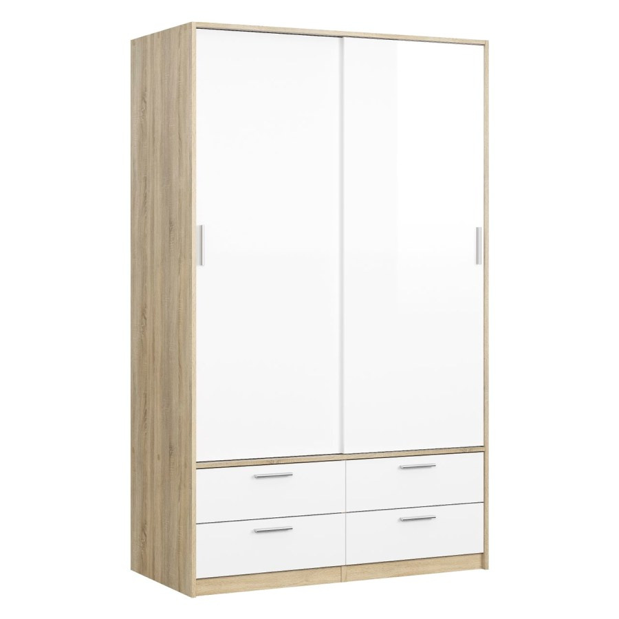 Šatní skříň Lincoln s posuvnými dveřmi nabízí dostatek úložného prostoru a univerzální vyuužití. Výborně se hodí např. do ložnice, do dětského i studentského pokoje, ale i do pracovny či předsíně. Skříň je vyrobená v jednoduchém a nadčasovém skandinávském stylu. Má rovné a čisté linie, které vytvoří útulný, pohodový a příjemný interiér. Vnitřní vybavení skříně je vyobrazeno v doplňkových fotografiích. Skříň je také vybavena praktickými zásuvkami, které můžete využít např.na spodní prádlo. Je dodávaná v demontu. Součástí balení je montážní návod včetně všech spojovacích prvků. Vyobrazené dekorace nejsou v ceně.