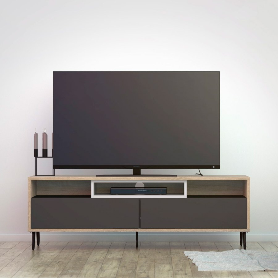 TV stolek Mateo nabízí vše, co potřebujete k uložení médií. Je vyrobený z lamina, které je odolné a lehce se udržuje. Jeho jednoduché rovné linie se skvěle hodí do každého interiéru a poskytuje dostatek prostoru nejen pro televizi, ale i pro ostatní elektroniku, jako je např.domácí kino, herní konzole, audio technika atd...Stolek je vybaven prostornými zásuvkami a také otvorem pro vedení kabelů. TV stolek Mateo je dodávaný v demontu a součástí balení je montážní návod včetně všech potřebných spojovacích prvků. Vyobrazené doplňky, dekorace ani televize nejsou v ceně stolku.
