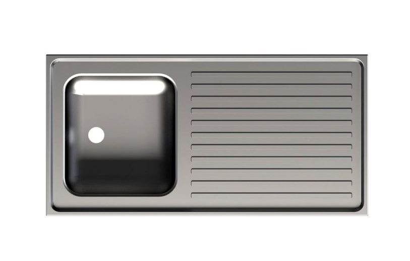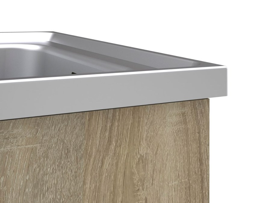 Nerezový kuchyňský dřez ke skříňce Cassie 513. Dřez přesně pasuje na skříňku a není tedy potřeba vyřezávat otvor v pracovní desce. V ceně je pouze nerezový dřez bez baterie a bez sifonu.