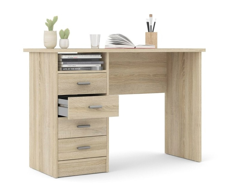 Psací stůl Felix je vhodný především do dětských a studentských pokojů, ale můžete s ním vybavit i kancelář, nebo domácí pracovnu. Psací stůl Felix poskytuje dostatek pracovního i úložného prostoru. Praktické zásuvky pojmou všechny nezbytné pomůcky a v případě potřeby je vždy budete mít po ruce. Stůl je vyrobený z odolného lamina, které je odolné a snadné na údržbu. Psací stůl Felix je dodávaný v demontu a součástí je montážní plánek včetně všech potřebných spojovacích materiálů. Vyobrazené doplňky a dekorace nejsou v ceně stolu.