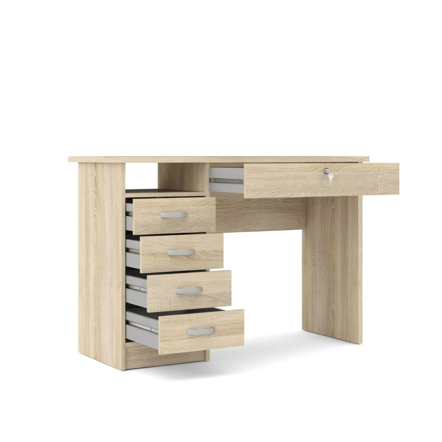 Psací stůl Felix je vhodný především do dětských a studentských pokojů, ale můžete s ním vybavit i kancelář, nebo domácí pracovnu. Psací stůl Felix poskytuje dostatek pracovního i úložného prostoru. Praktické zásuvky pojmou všechny nezbytné pomůcky a v případě potřeby je vždy budete mít po ruce. V případě umístění v kanceláři jistě oceníte uzamykatelnou zásuvku na důležité dokumenty, nebo osobní věci. Stůl je vyrobený z odolného lamina, které je odolné a snadné na údržbu. Psací stůl Felix je dodávaný v demontu a součástí je montážní plánek včetně všech potřebných spojovacích materiálů. Vyobrazené doplňky a dekorace nejsou v ceně stolu.