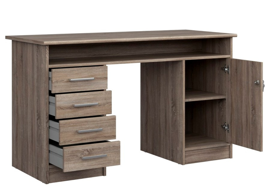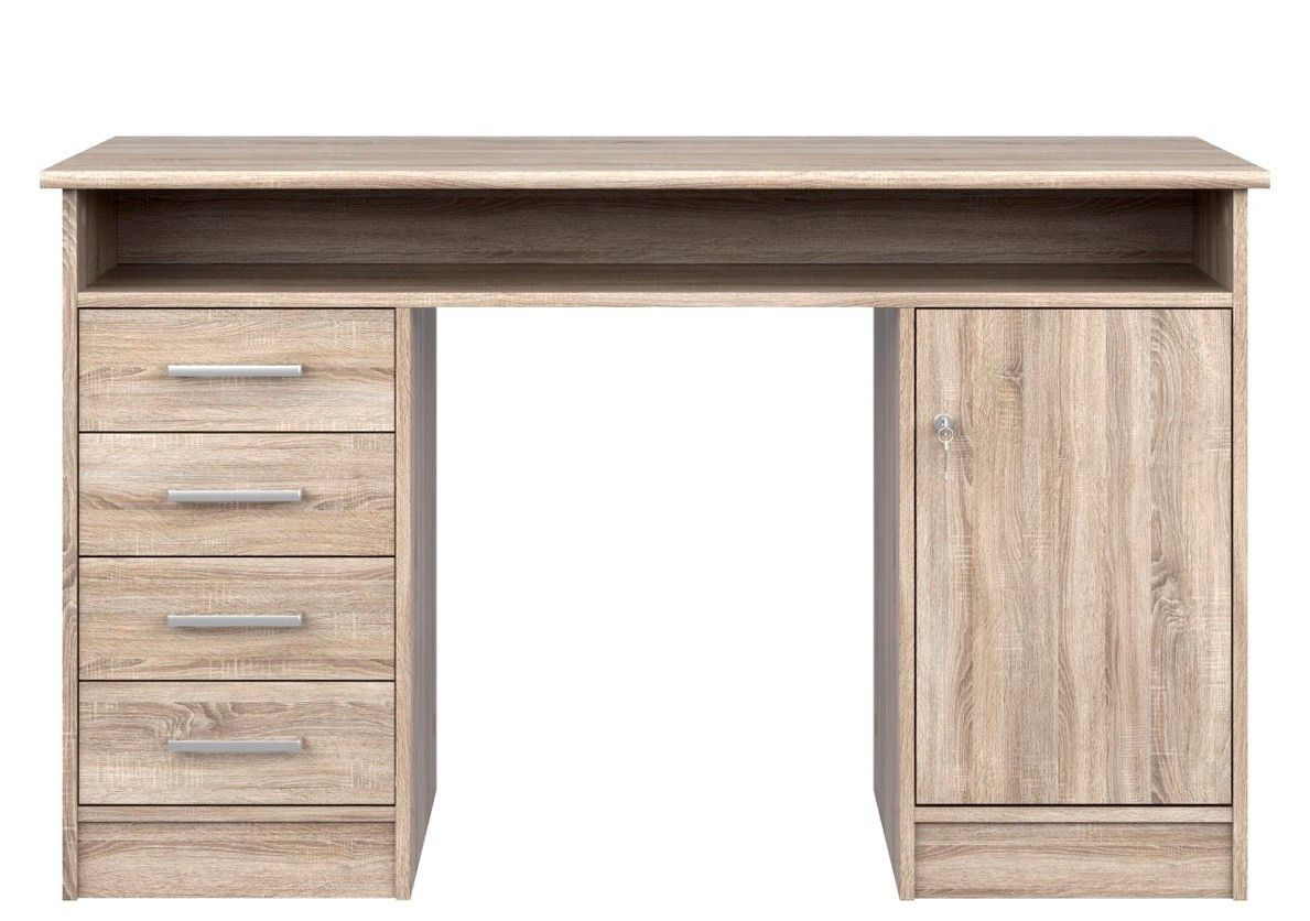 Máte doma studenta nebo školáka, který potřebuje hodně prostoru na pomůcky a práci? Nebo potřebujete vybavit kancelář či domácí pracovnu? Pak je pro Vás psací stůl Felix perfektní řešení. Psací stůl Felix poskytuje dostatek pracovního i úložného prostoru. Praktické zásuvky a skříňka pojmou všechny nezbytné pomůcky a v případě potřeby je vždy budete mít po ruce. V případě umístění v kanceláři jistě oceníte uzamykatelnou skříňku na důležité dokumenty, nebo osobní věci. Stůl je vyrobený z lamina, které je odolné a snadné na údržbu. Psací stůl Felix je dodávaný v demontu a součástí je montážní plánek včetně všech potřebných spojovacích materiálů. Nyní už stačí vybrat pohodlnou židli a pracovní či školní úspěchy se jen pohrnou. Vyobrazené doplňky a dekorace nejsou v ceně stolu.