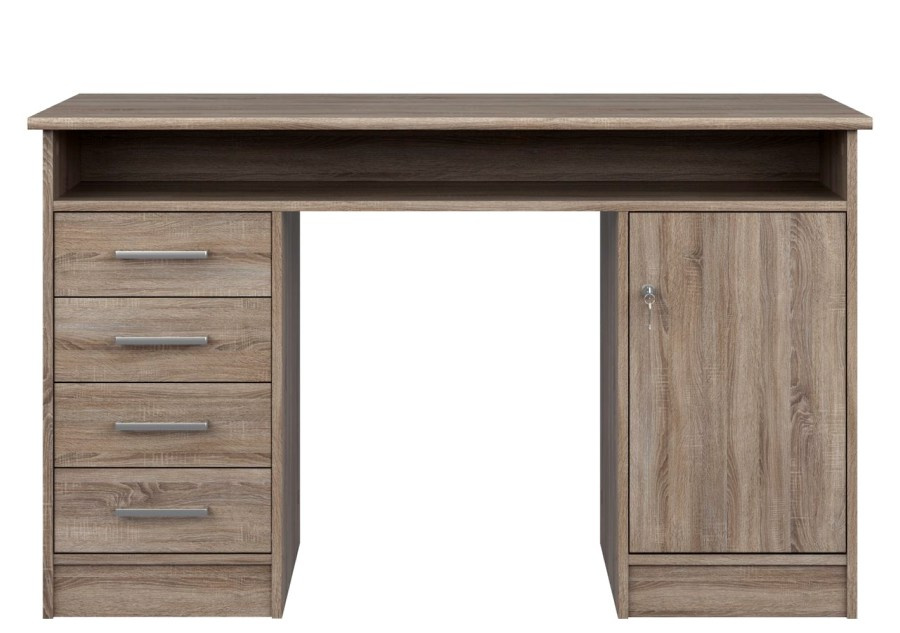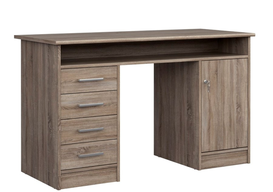Máte doma studenta nebo školáka, který potřebuje hodně prostoru na pomůcky a práci? Nebo potřebujete vybavit kancelář či domácí pracovnu? Pak je pro Vás psací stůl Felix perfektní řešení. Psací stůl Felix poskytuje dostatek pracovního i úložného prostoru. Praktické zásuvky a skříňka pojmou všechny nezbytné pomůcky a v případě potřeby je vždy budete mít po ruce. V případě umístění v kanceláři jistě oceníte uzamykatelnou skříňku na důležité dokumenty, nebo osobní věci. Stůl je vyrobený z lamina, které je odolné a snadné na údržbu. Psací stůl Felix je dodávaný v demontu a součástí je montážní plánek včetně všech potřebných spojovacích materiálů. Nyní už stačí vybrat pohodlnou židli a pracovní či školní úspěchy se jen pohrnou. Vyobrazené doplňky a dekorace nejsou v ceně stolu.