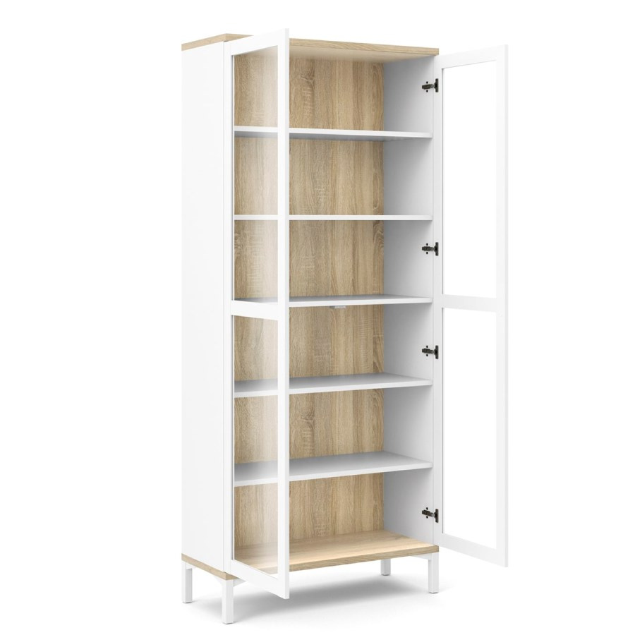 Vitrína Atrei potěší nejen milovníky skandinávského designu. Je navržena a vyrobena v nadčasovém designu, který se hodí do každého moderního interiéru. Vitrína má kvalitní zpracování a je vyráběna v souladu s ohledy na životní prostředí a navíc je praktická a funkční. Velmi zajímavá a netypická je kombinace černé nebo bílé barvy s dekorem dřeva. Vitrínu můžete doplnit dalšími prvky Atrei ve stejném designu, nebo si ji můžete objednat i samostatně a doplnit tak stávající interiér. Vitrína je dodávaná v demontu. Součástí balení je schématický montážní návod, včtetně všech potřebných spojovacích prvků. Vyobrazené dopňky a dekorace nesjou v ceně.