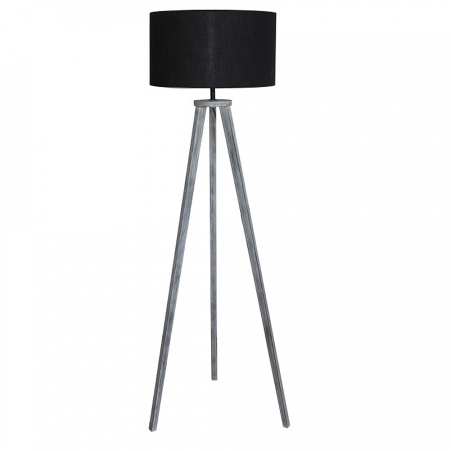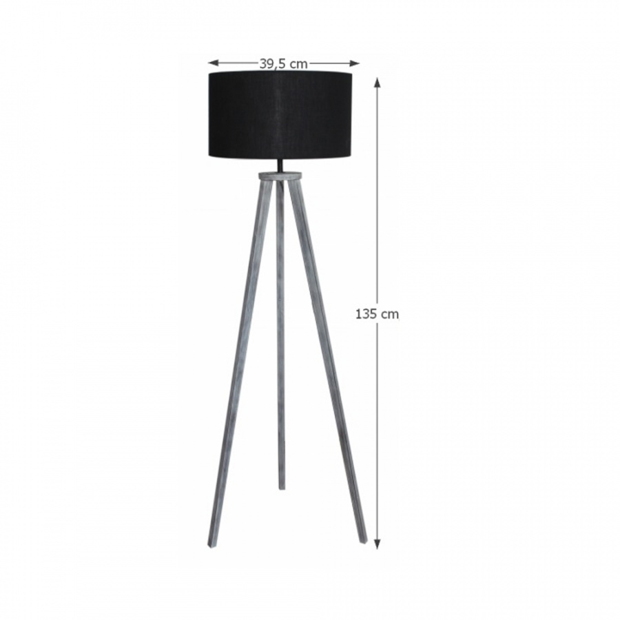 Stylová stojací lampa s podstavcem ve tvaru trojnožky.