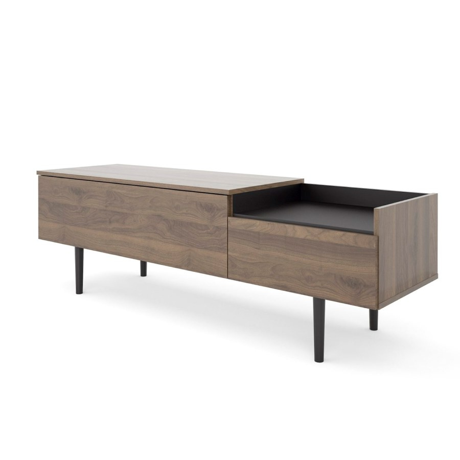 Pokud máte rádi RETRO styl, tak TV stolek Ulla stvořen právě pro Vás. S tímto designovým kouskem bude Váš obývací pokoj vypadat originálně. Použitý materiál a dekory se lehce kombinují, takže s tímto TV stolkem můžete doplnit stávající interiér. Retro vzhled zdůrazňují vysoké nožky a bezúchytkové provedení. Stolek má kvalitní zpracování a je vyráběn v souladu s ohledy na životní prostředí. Poskytuje dostatek prostoru nejen pro televizi, ale i pro ostatní elektroniku a díky tomu budete mít doma přehledný a organizovaný pořádek. Stolek je dodávaný v demontu. Součástí balení je montážní návod včetně všech potřebných spojovacích prvků.Cena je uvedena pouze za TV stolek. Vyobrazené doplňky, dekorace a elektronika nejsou v ceně.
