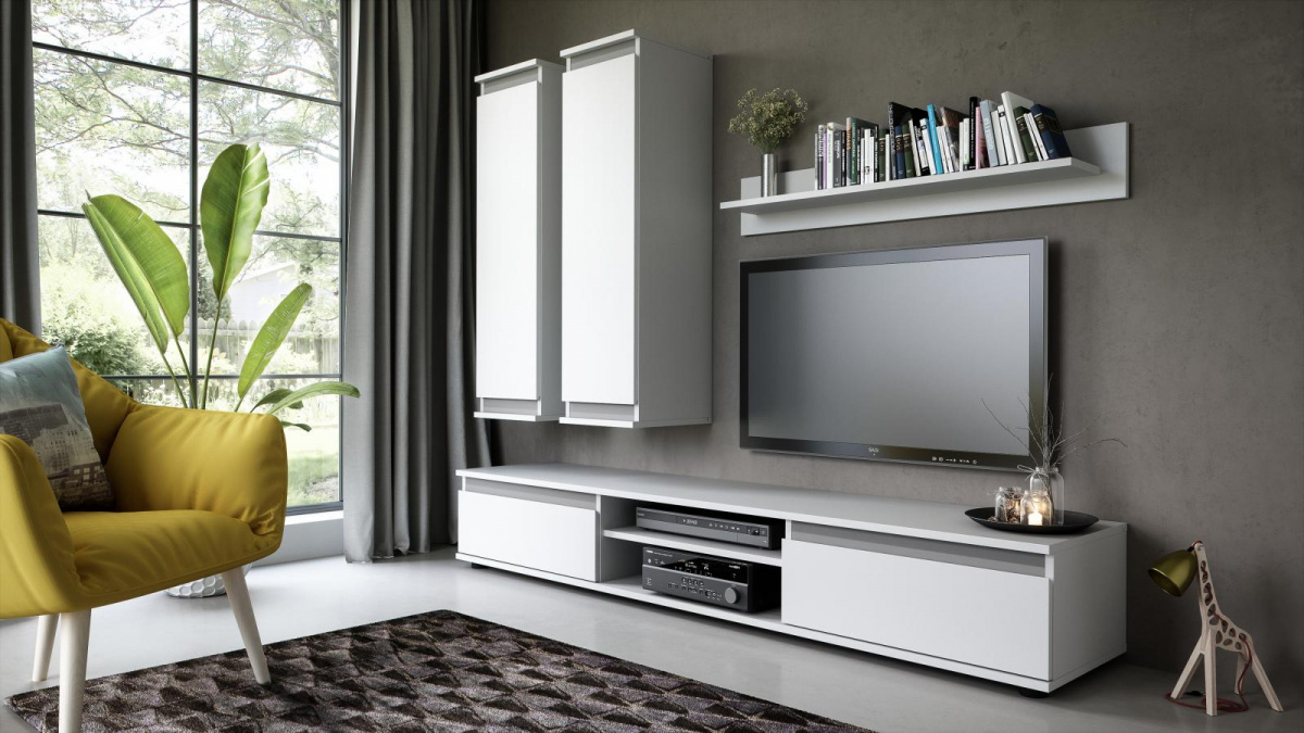 Obývací stěna Cher je vyrobena z lamina bílé barvy, která působí čistě a jemně. Skvěle zapadá do oblíbeného skandinávského stylu a díky svým rozměrům je vhodná i do malometrážních bytů. Stěna se skládá ze dvou závěsných skříněk, police a TV stolku. Skříňky i stolek nabízí dostatek úložného prostoru. Všechny díly jsou dodávány v demontu a součástí je montážní návod, včetně všech spojovacích prvků. Vyobrazené doplňky a dekorace nejsou v ceně.