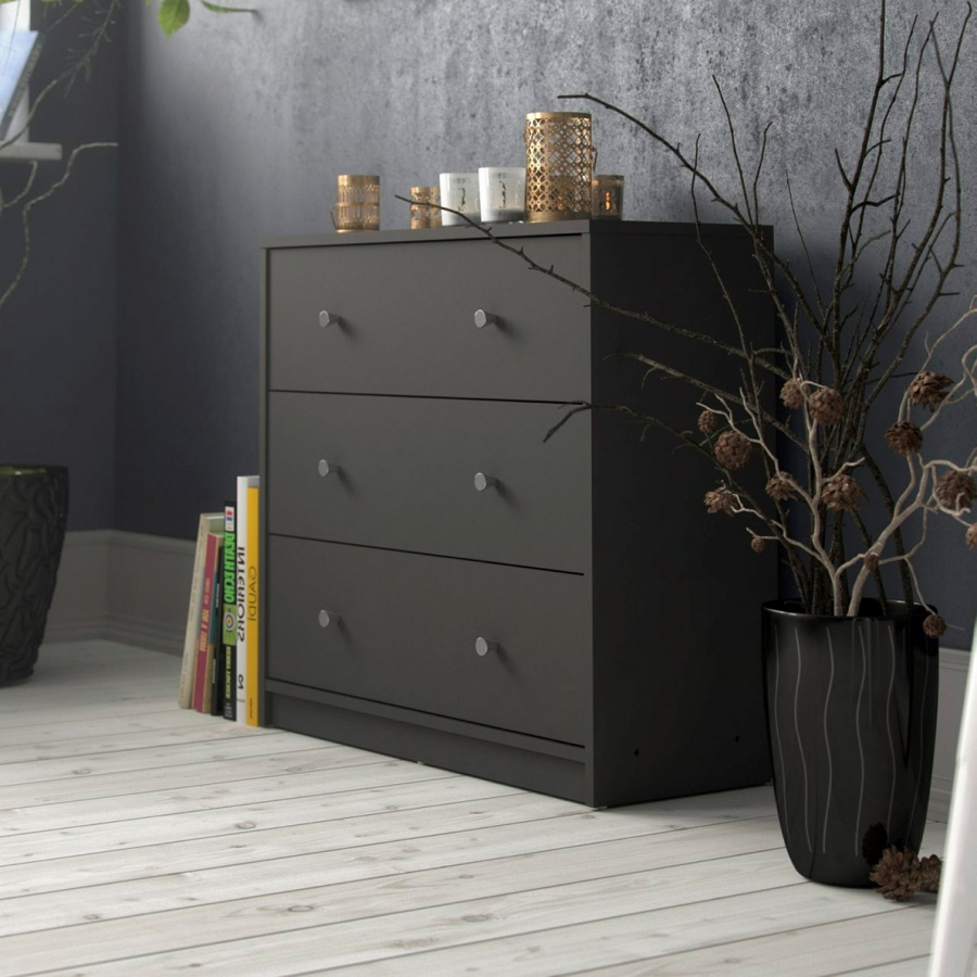 Komoda Myra nabízí úložný prostor, který je nezbytný v každé domácnosti. Komoda Myra nabízí spoustu možností využití. Ať už bude umístěna v ložnici, dětském pokoji, nebo v pracovně, bude vzorně plnit svoji funkci a můžete do ní uložit např.oblečení, hračky, dokumenty, deskové hry, sbírku CD, nebo nezaložené fotografie. Komodu nabízíme v několika dekorech a jistě si najdete tu pravou, která bude ladit s Vaším interiérem. Komoda je vyráběna v souladu s ohledy na životní prostředí, takže se řadí k eco-friendly výrobkům a neobsahuje žádné škodlivé látky. Komoda je dodávaná v demontu. Součástí balení je montážní návod včetně všech potřebných spojovacích prvků. Vyobrazené doplňky a dekorace nejsou v ceně.