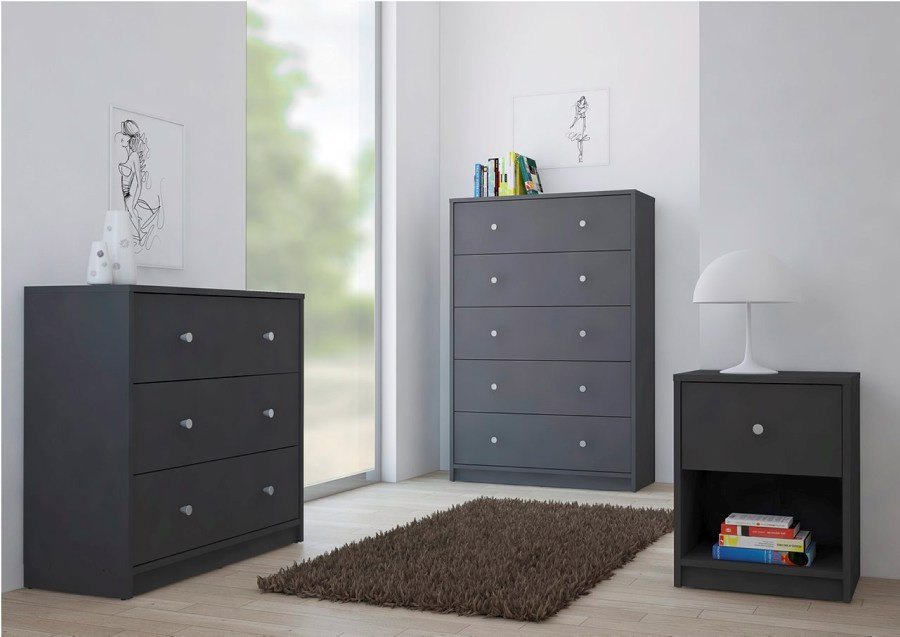 Komoda Myra nabízí úložný prostor, který je nezbytný v každé domácnosti. Komoda Myra nabízí spoustu možností využití. Ať už bude umístěna v ložnici, dětském pokoji, nebo v pracovně, bude vzorně plnit svoji funkci a můžete do ní uložit např.oblečení, hračky, dokumenty, deskové hry, sbírku CD, nebo nezaložené fotografie. Komodu nabízíme v několika dekorech a jistě si najdete tu pravou, která bude ladit s Vaším interiérem. Komoda je vyráběna v souladu s ohledy na životní prostředí, takže se řadí k eco-friendly výrobkům a neobsahuje žádné škodlivé látky. Komoda je dodávaná v demontu. Součástí balení je montážní návod včetně všech potřebných spojovacích prvků. Vyobrazené doplňky a dekorace nejsou v ceně.
