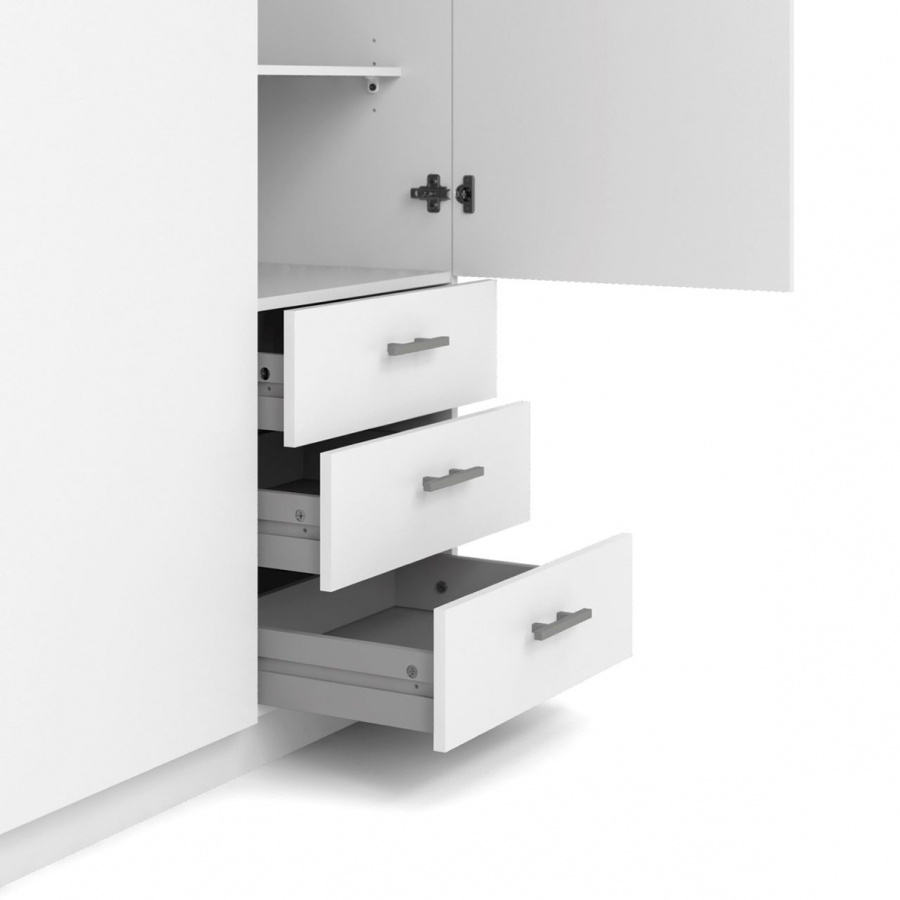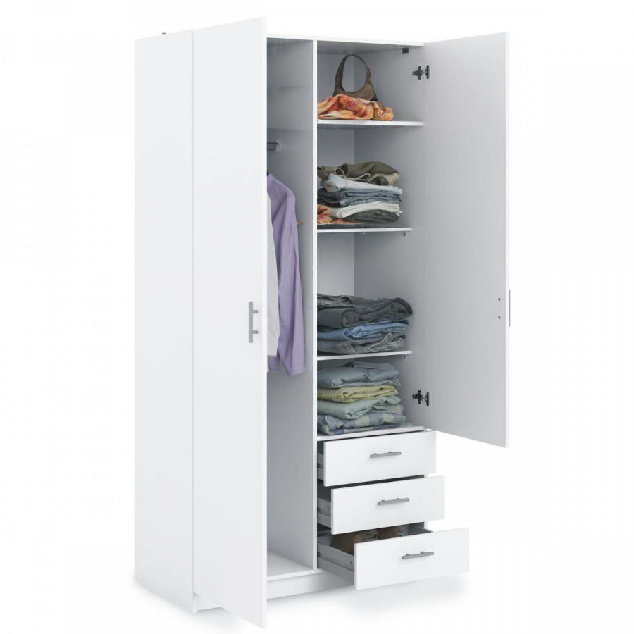 Šatní skříň Pegi splňuje veškeré požadavky pro ukládání oblečení. Vnitřní uspořádání skříně poskytuje dostatek prostoru na oblečení které je potřeba pověsit, na oblečení které poskládáte do polic a díky třem praktickým zásuvkám do skříně uložíte i drobné prádlo a budete mít všechno svoje oblečení uložené na jednom místě. Skříň je vyrobena z lamina, které je odolné a snadné na údržbu. Skříň je dodávána v demontu a součástí je montážní plánek včetně všech potřebných spojovacích materiálů. U tohoto typu skříně mohou být některé nepohledové hrany desek nebo plochy neopáskovány v barvě skříně (především vrchní půda či hrany dveří, apod.). Vyobrazené doplňky a dekorace nejsou v ceně.