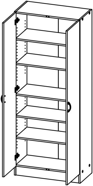 Policová skříň Pegi splňuje veškeré požadavky pro ukládání oblečení. Vnitřní uspořádání skříně poskytuje dostatek prostoru na oblečení. Skříň má univerzální využití a je vyrobena z lamina, které je odolné a snadné na údržbu. Skříň je dodávaná v demontu a součástí je montážní plánek včetně všech potřebných spojovacích materiálů. U tohoto typu skříně mohou být některé nepohledové hrany desek nebo plochy neopáskovány v barvě skříně (především vrchní půda či hrany dveří, apod.).