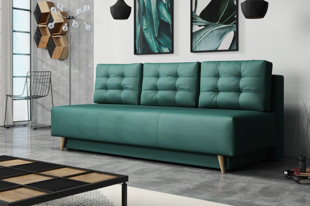 Pohovka Sebastian je elegantním kouskem sedacího nábytku s nádechem RETRO designu a výborně zapadne do každého interiéru. Retro design podtrhují zešikmené dřevěné nohy a látkové knoflíky na opěrných polštářích. Pohovka je rozkládací a samozřejmostí je i nepostradatelný úložný prostor. Jednoduchým rozložením pomocí automatu vznikne dostatečně prostorné lůžko občasnému přespání Vaší návštěvy. Výpň sedáku tvoří pružiny bonell a kvalitní PUR pěna. Pohovka je celočalouněná, takže ji můžete umístit i do prostoru. Výborně se hodí do obývacího pokoje, do pracovny či pokoje pro hosty. Pohovku nabízíme v několika trendy barvách. Vyobrazené dopňky a dekorace nejsou v ceně. Zobrazení barev produktu na fotograii se může nepatrně lišit od skutečnosti.