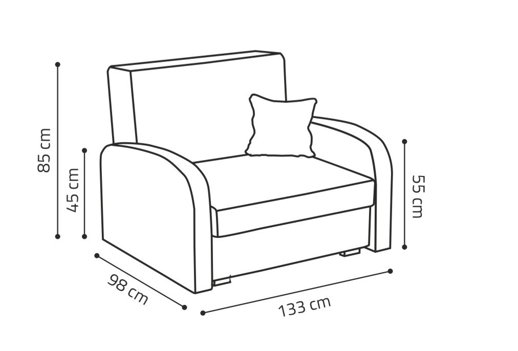 Rozkládací křeslo Vivian je skvělou volbou pro ty, kteří bojují se stísněnými prostory. Je vhodné např. do dětského, studentského, nebo hostinského pokoje. Jednoduchým rozložením pomocí automatu, získáte lůžko k příležitostnému přespání Vaší návštěvy, nebo kamaráda dětí. Výplň sedáku tvoří vlnité pružiny v kombinaci s PUR pěnou. Křeslo je potaženo kvalitní potahovou látkou a nabízíme ho v několika trendy barvách. Křeslo disponuje i nepostradatelným úložným prostorem, který využijete např. na deku a polštář. V ceně křesla je 1 dekorační polštář. Ostatní vyobrazené dekorace nejsou v ceně. Zobrazení barev produktu na fotograii se může nepatrně lišit od skutečnosti.