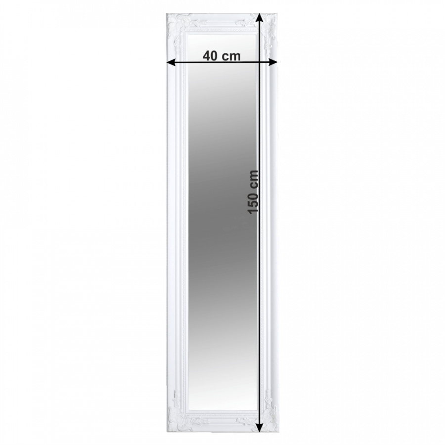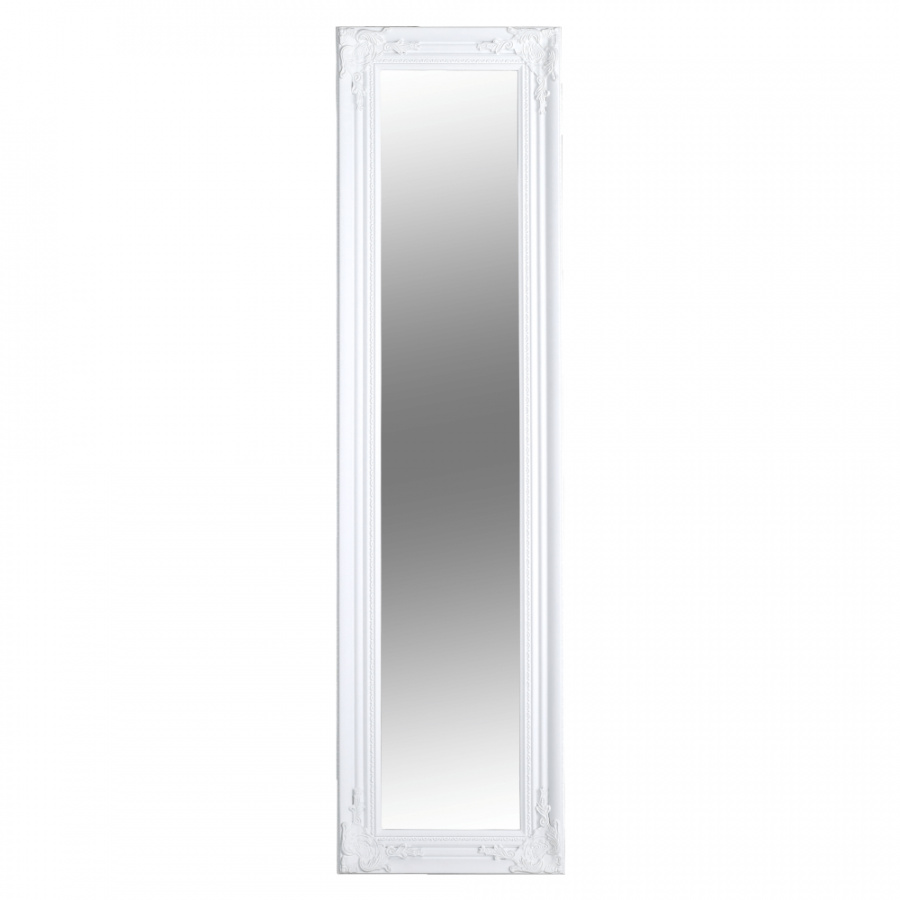 Elegantní zrcadlo s dřevěným rámem bílé barvy. Rozměry zrcadla 40x150 cm.