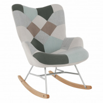 Houpací křeslo, zelená-bílá patchwork/bílá/buk, GERON
