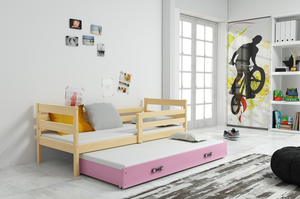 Dětská postel Norbert II je určena pro ty, kteří pro své dítě hledají funkčnost, pohodlí a kvalitu. Postel je vyrobena z borovicového dřeva. Její stabilní konstrukce, zaoblené hrany a zábrana, která je v ceně postele, zajišťují bezpečnost a pohodlí dítěte. Zábranu si můžete podle potřeby umístit na pravou, nebo levou stranu postele. Součástí postele je také praktická přistýlka s matrací, kterou můžete využít pro druhé dítě, nebo když u Vašeho dítěte bude chtít přespat kamarád/ka. Obě části postele mají rošt a pěnovou matraci se snímatelným potahem. Plocha pro spaní je 90x200 cm (vrchní část) a 80x190 cm (přistýlka). Postel je dodávána v demontu a součástí je montážní plánek včetně všech potřebných spojovacích materiálů. Vyobrazené dekorace nejsou v ceně. Zobrazení barev na fotografii se může od skutečnosti nepatrně lišit.