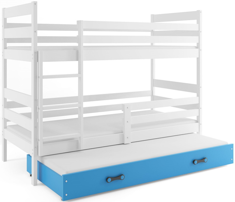 Dětská patrová postel Norbert je určena pro ty, kteří pro své dítě hledají funkčnost, moderní design a kvalitu. Postel je vyrobena z kvalitního borovicového dřeva. Její stabilní konstrukce, zaoblené hrany a zábrana na horní i dolní posteli, zajišťují bezpečnost a pohodlí dítěte. Žebřík si můžete podle potřeby umístit na pravou, nebo levou stranu postele. Když děti patrová postel omrzí, je možno palandu rozložit na dvě samostatné postele. Součástí postele je také praktická přistýlka s matrací, kterou můžete využít pro další dítě, nebo když u Vašeho dítěte bude chtít přespat kamarád/ka. Všechny části postele mají rošt a pěnovou matraci v ceně. Plocha pro spaní je 90x200 cm (vrchní a spodní část) a 80x190 cm (přistýlka). Postel je dodávána v demontu a součástí je montážní plánek včetně všech potřebných spojovacích materiálů. Vyobrazené dekorace nejsou v ceně. Zobrazení barev na fotografii se může od skutečnosti nepatrně lišit.