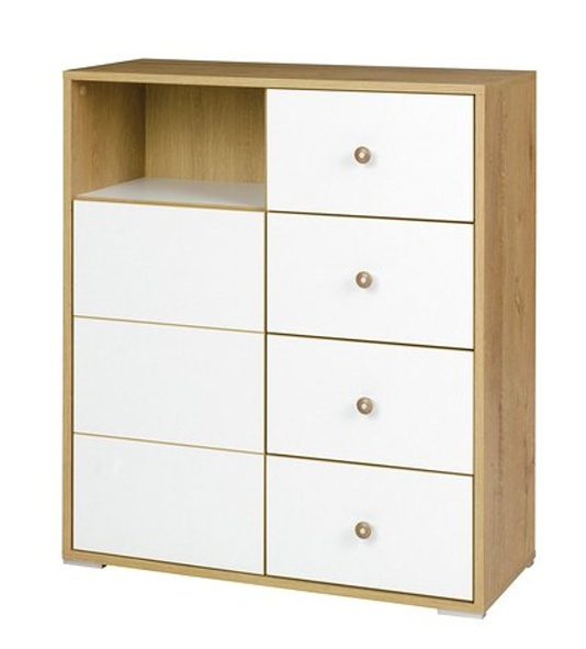 Komoda z kolekce Mefisto je vyrobená z lamina, které je odolné a snadné na údržbu. Komoda Mefisto nabízí dostatek úložného prostoru a spoustu možností využití, od uložení oblečení, hraček až po školní pomůcky. Můžete ji umístit nejen do dětského, nebo studentského pokoje ale také např. do pracovny či ložnice. Komoda je dodávaná v demontu. Součástí je montážní plánek včetně všech potřebných spojovacích materiálů.