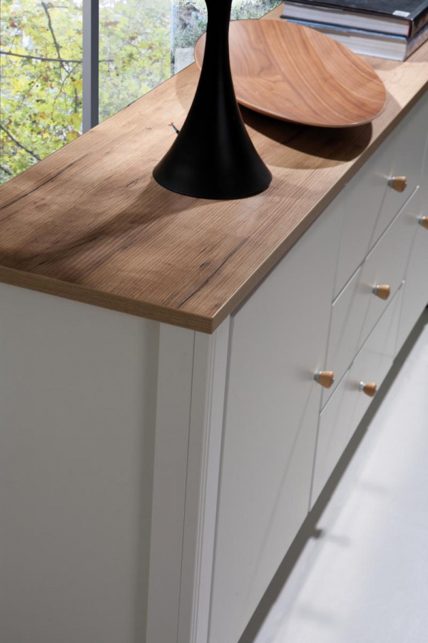 Komoda Bacardi díky svému provedení poskytuje dostatek úložného prostoru. Je vyrobená z lamina v krásné kombinaci dekorů zlatý dub/cream. Lamino je odolné a jistě oceníte i velmi snadnou údržbu. Komoda má univerzální použití a svůj účel splní v kterékoliv místnosti. Je dodávaná v demontu a součástí balení je montážní návod včetně všech spojovacích prvků.