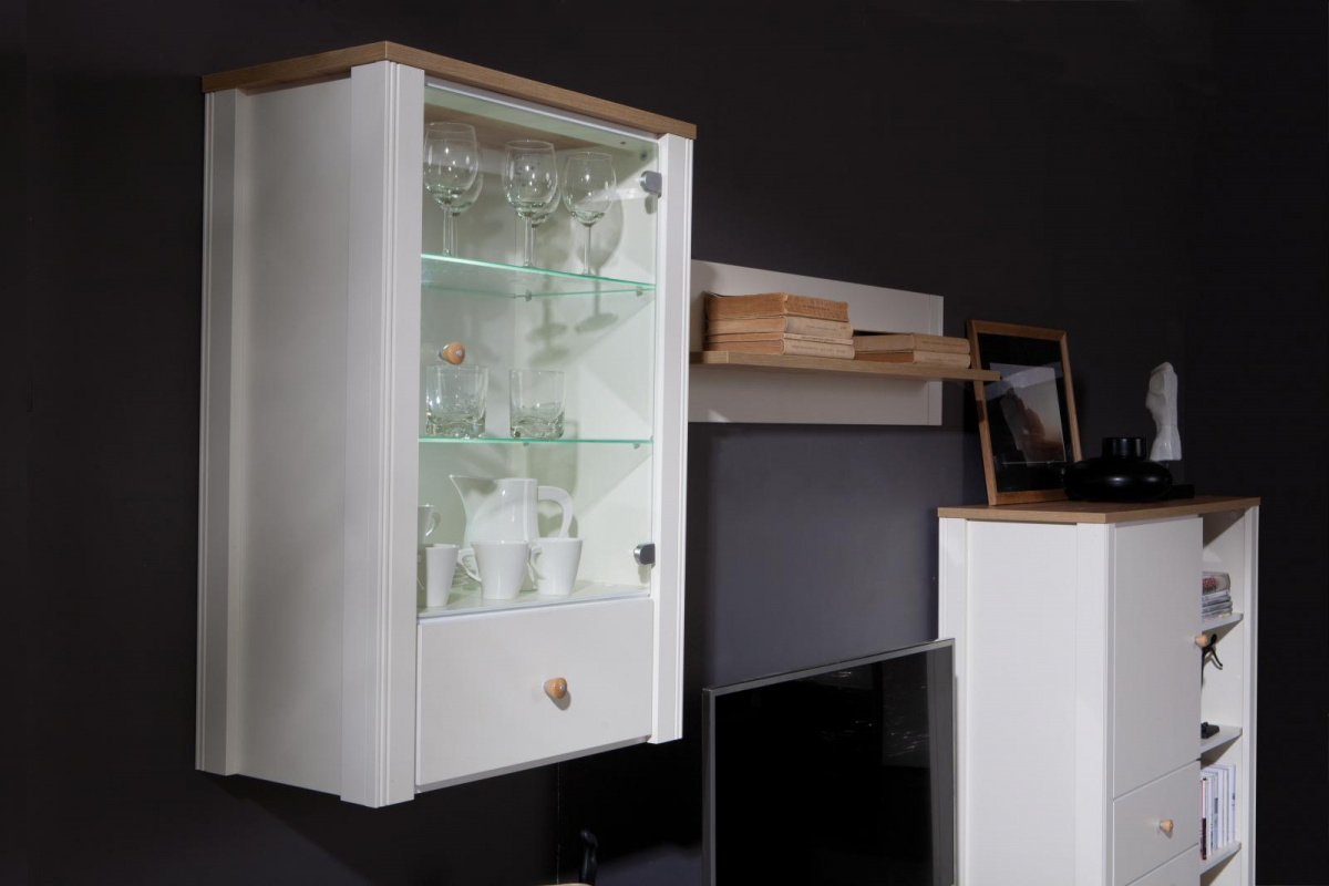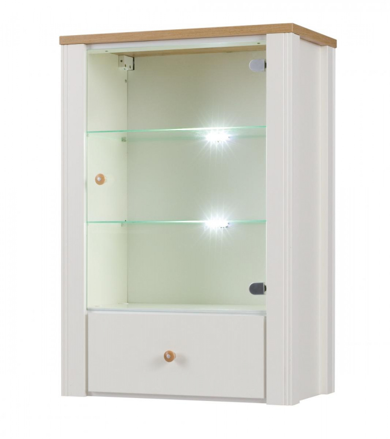 Závěsná vitrína Bacardi má díky svému provedení univerzální využití. Je vyrobená z lamina v krásné kombinaci dekorů zlatý dub/cream. Lamino je odolné a jistě oceníte i velmi snadnou údržbu. Vitrínu je možno doplnit LED osvětlením - osvětlení není v ceně a v případě zájmu, je ho nutno dokoupit zvlášť. Vitrína je dodávaná v demontu a součástí balení je montážní návod včetně všech spojovacích prvků.