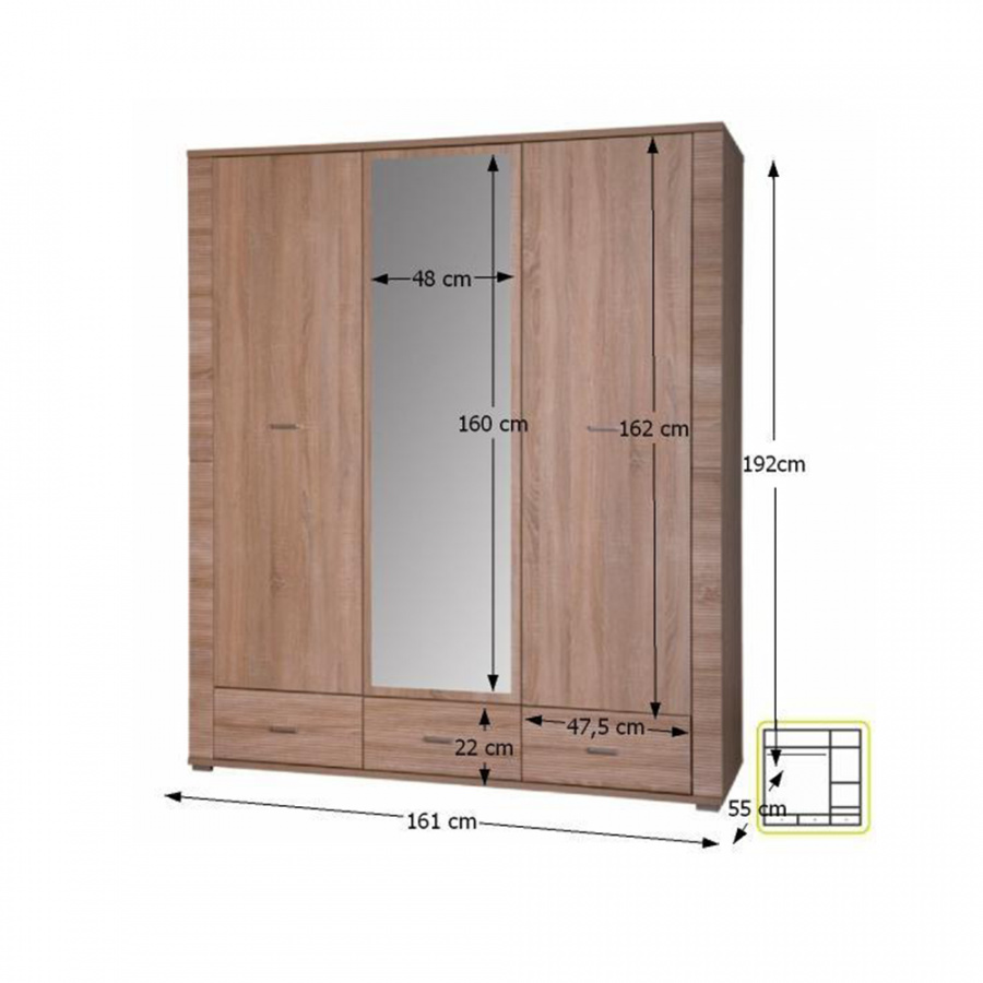 Skříň věšáková typ 02, se třemi policemi a třemi zásuvkami, vhodná na zařízení obývacích pokojů, ložnic i pracoven, materiál: DTD laminovaná. Hrany jednotlivých komponentů jsou ukončeny vroubkovanou lištou. Barevné provedení: dub sonoma. Rozměry (ŠxVxH): 161x192x55 cm. Tloušťka materiálu korpus: 16 mm Tloušťka materiálu vrchní desky: 22 mm Tloušťka materiálu spodní desky: 22 mm Dodávána v demontu, pouze na objednávku s dodací lhůtou 5-7 týdnů.