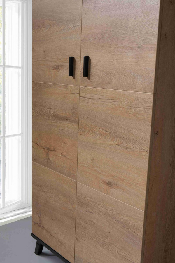 Šatní skříň Jocker poskytuje dostatek úložného prostoru a je vyrobena z lamina v krásném dekoru dub lefkas v kombinaci s černou. Lamino je odolné a jistě oceníte i velmi snadnou údržbu. Uvnitř skříně je 1x police a šatní tyč. Skříň má univerzální použití a svůj účel splní kdekoliv. Skříň je dodávaná v demontu. Součástí balení je montážní návod včetně všech spojovacích prvků.