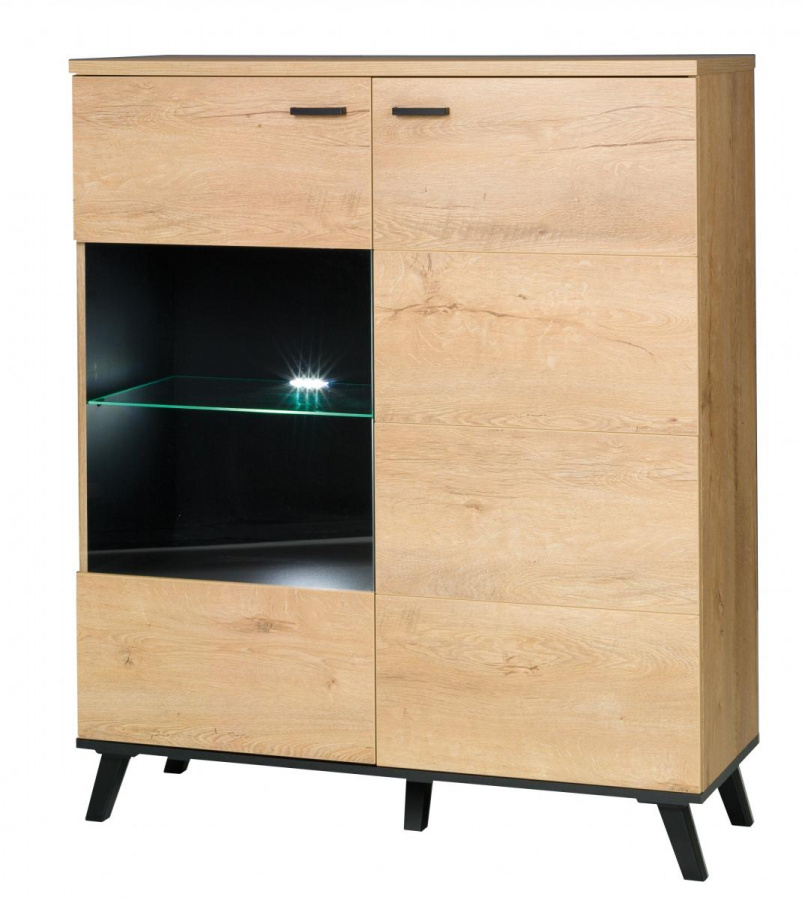 Vitrína Jocker poskytuje dostatek úložného prostoru a je vyrobena z lamina v krásném dekoru dub lefkas v kombinaci s černou. Lamino je odolné a jistě oceníte i velmi snadnou údržbu. Vitrínu je možno doplnit LED osvětlením - osvětlení není v ceně a v případě zájmu, je ho nutno dokoupit zvlášť. Vitrína má univerzální použití a nabízí dostatek úložného prostoru. Je dodávaná v demontu. Součástí balení je montážní návod včetně všech spojovacích prvků.