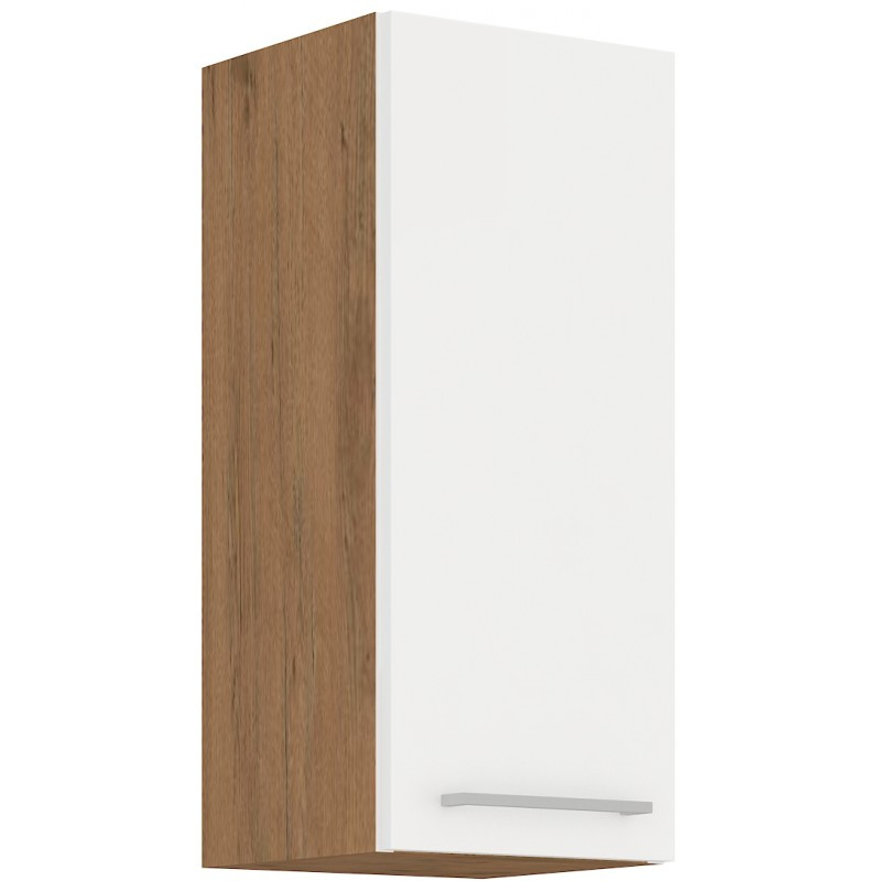 Vrchní kuchyňská skříňka 30G-72-1F je vyrobena z lamina v dekoru dub lancelot v kombinaci s vysokým leskem. Prohlédněte si širokou nabídku skříněk a vytvořte si kuchyň dle vlastních představ. Může být rohová, rovná, krátká i dlouhá. Fantazii se meze nekladou. V doplňkových fotografiích najdete pro inspiraci fotky kuchyní, které jsou z těchto skříněk sestaveny. Skříňka je dodávaná v demontu. Součástí je montážní plánek včetně všech potřebných spojovacích materiálů.