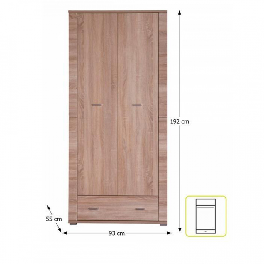 Skříň věšáková s jednou policí typ 03, vhodná na zařízení obývacích pokojů, ložnic i pracoven, materiál: DTD laminovaná. Hrany jednotlivých komponentů jsou ukončeny vroubkovanou lištou. Barevné provedení: dub sonoma. Rozměry (ŠxVxH): 93x192x55 cm. Tloušťka materiálu korpus: 16 mm Tloušťka materiálu vrchní desky: 22 mm Tloušťka materiálu spodní desky: 22 mm Dodávána v demontu, pouze na objednávku s dodací lhůtou 5-7týdnů.