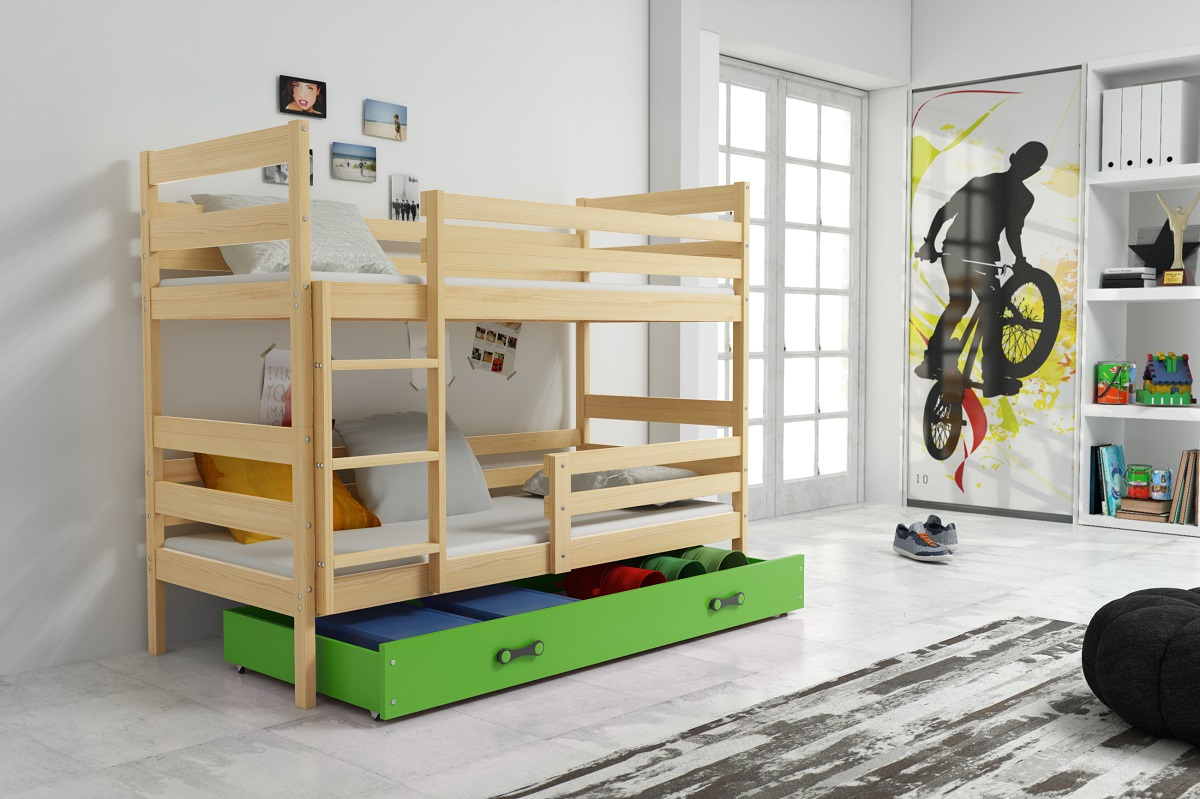 Patrová postel Norbert borovice/zelená