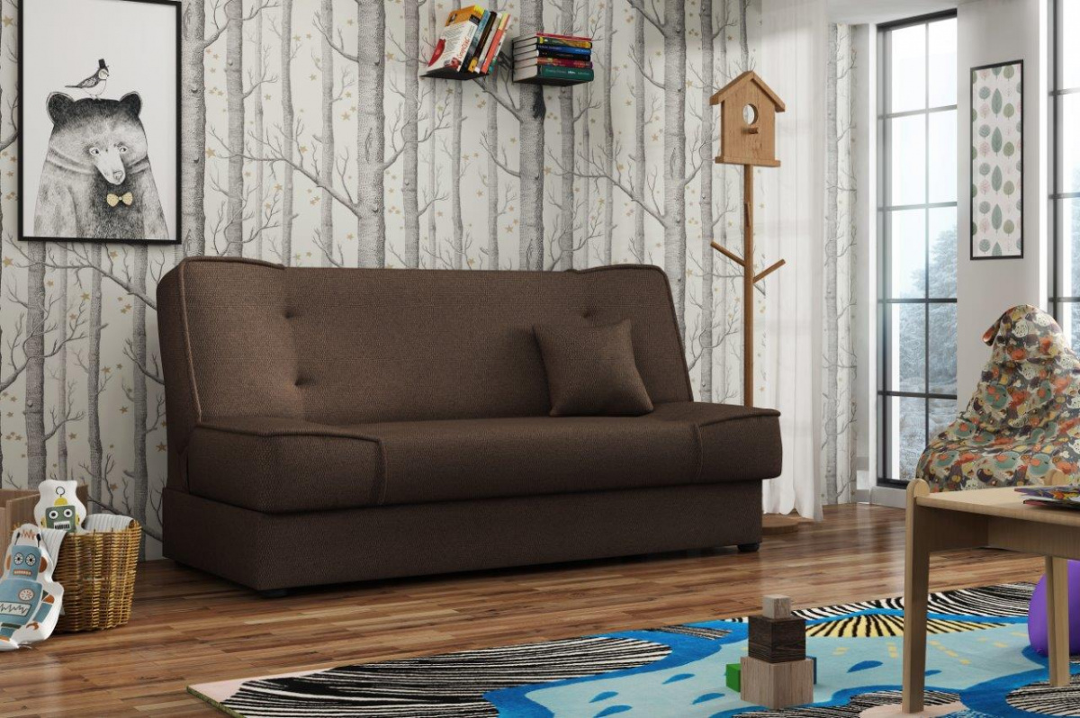 Pohovka Bega je vyrobená v jednoduchém a zároveň nadčasovém designu, který se hodí do každého interiéru a skvěle ho doplní. Díky svým rozměrům nezabere moc místa a je vhodná i do malých pokojů. Výplň sedáku tvoří kombinace pružin bonell s kvalitní PUR pěnou. Pohovka je rozkládací a samozřejmostí je i nepostradatelný úložný prostor. Jednoduchým rozložením pomocí systému klik-klak vznikne lůžko k občasnému přespání. Vybrat si můžete z několika trendy odstínů. V ceně pohovky je 1 dekorační polštářek. Ostatní vyobrazené doplňky a dekorace nejsou v ceně. Zobrazení barev na fotografii se může od skutečnosti lišit.